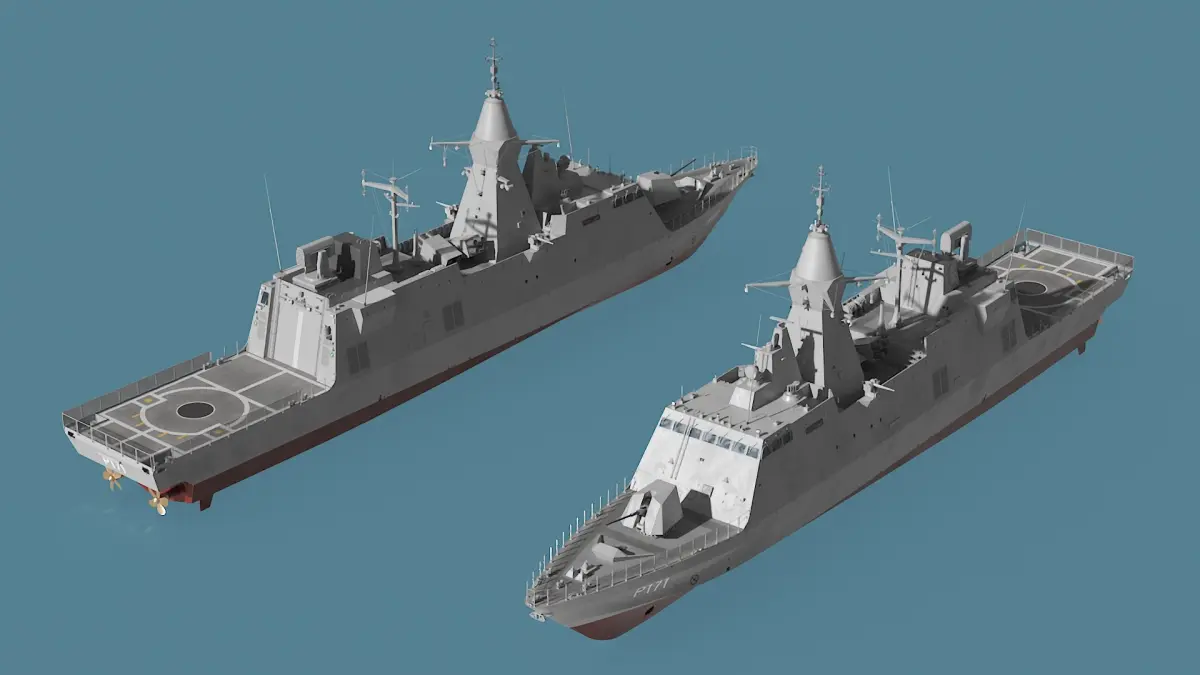 For military simulations, naval warfare training, defense industry presentations, maritime security, naval architecture, 3D modeling for military contractors, educational platforms, military technology visualization, defense strategy development, naval defense presentations, and tactical military projects.