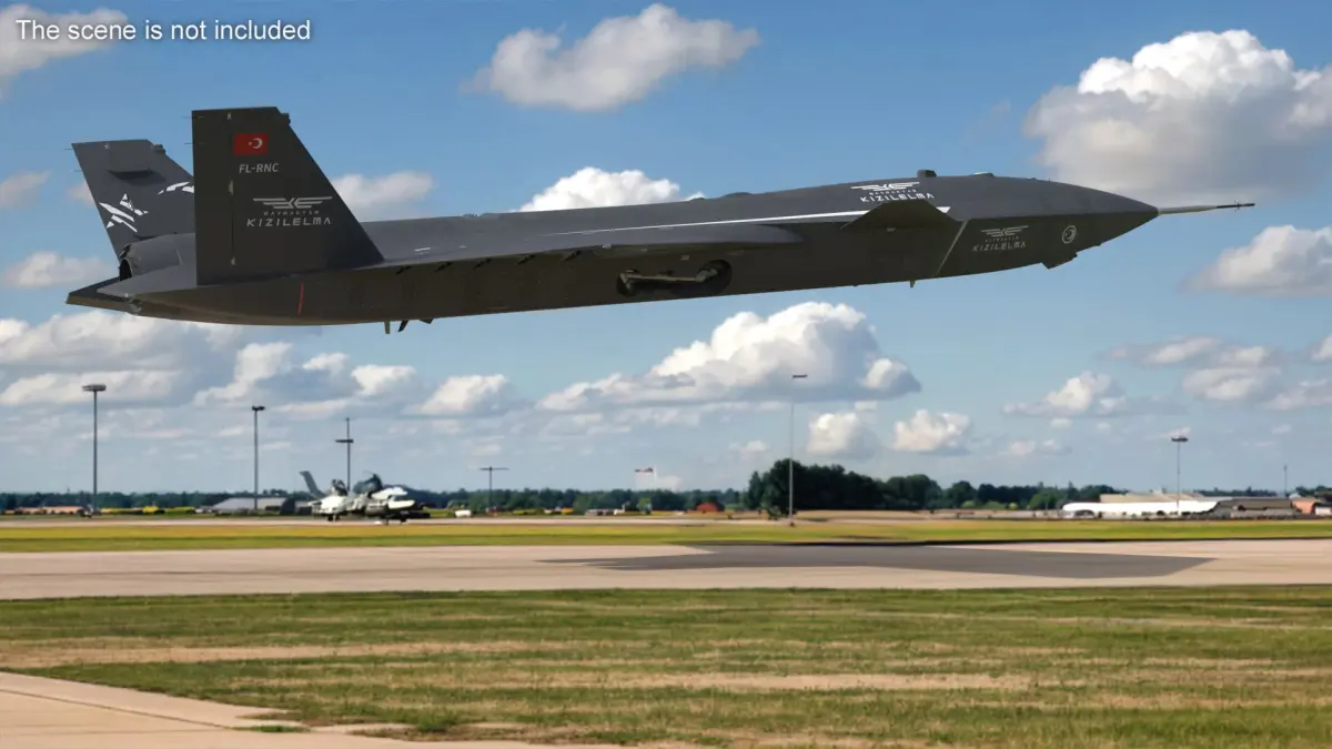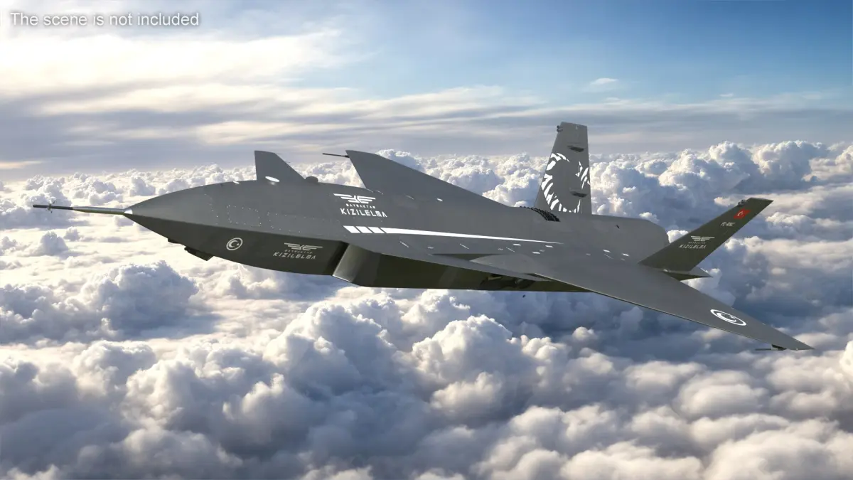 Bayraktar Kizilelma Fighter Jet Flying is a 3d model of an advanced unmanned aerial vehicle designed for reconnaissance and tactical missions.