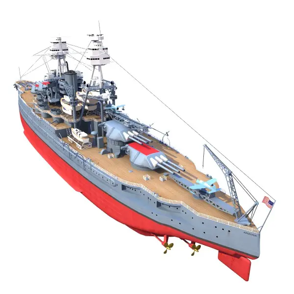 BB-39 USS Arizona, 1941 configuration and paint, including division color on turrets. USN Battleship destroyed during December 7th, 1941 attack on Pearl Harbor. Model includes single complete UV map and template.