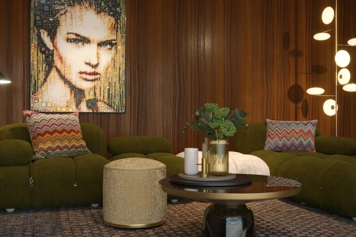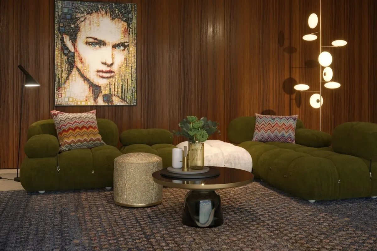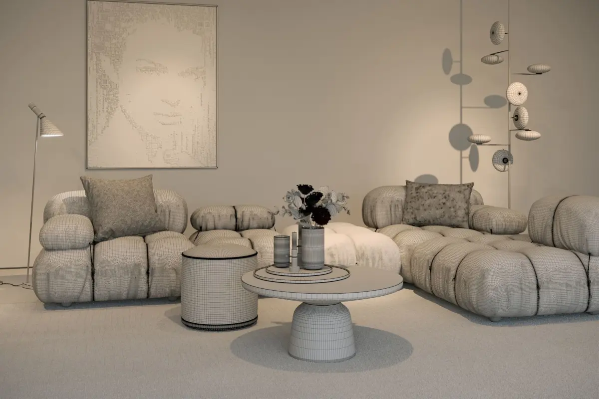 B&B Italia Cameleonda sofa scene with Penta Mami Standing lamp, Bell Table, Danmark Lingby Vases, Missoni pillows, art by Isabelle ScheltjensFile contains all textures, scene is sub division ready, renders are straight from 3DS MAX no PSD