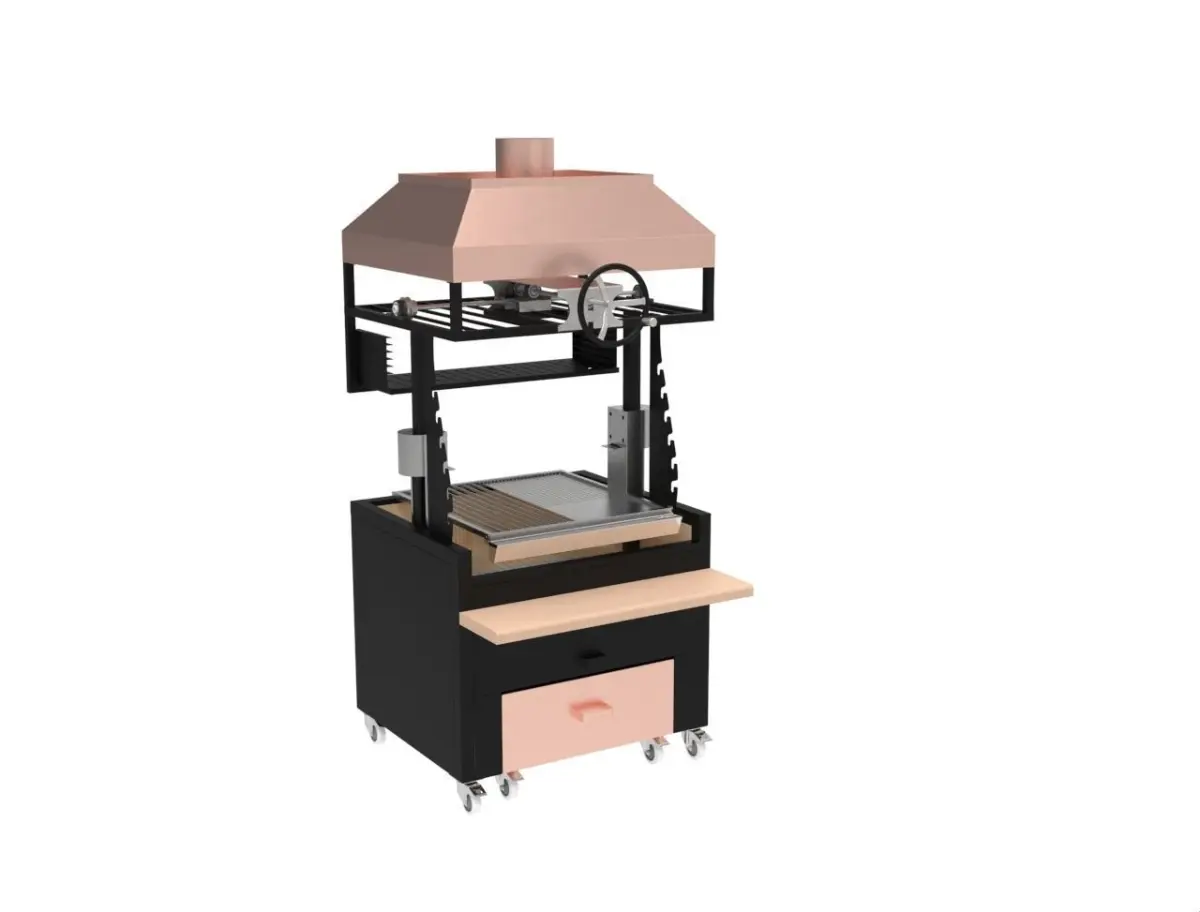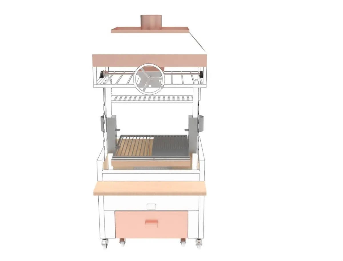 The grill is a multi-tier open charcoal grill equipped with accessories to perform a range of cooking techniques using grills, teppanyaki hot plates or skewers. grilling lends itself to an array of foods from meat,fish, seafood and vegetables, imparting light smoky aromas and flavours we seek in grill cooking.Open grill for skewer cooking on multiple levelsCan be either counter top or built in to a rangeManufactured with the latest technology stainless steel.Air vents to control burn rate and temperature of charcoal.3 sizes available with optional elevating system.Additional accessories available including skewer kit, stand and end of service lid.solidworks keysot