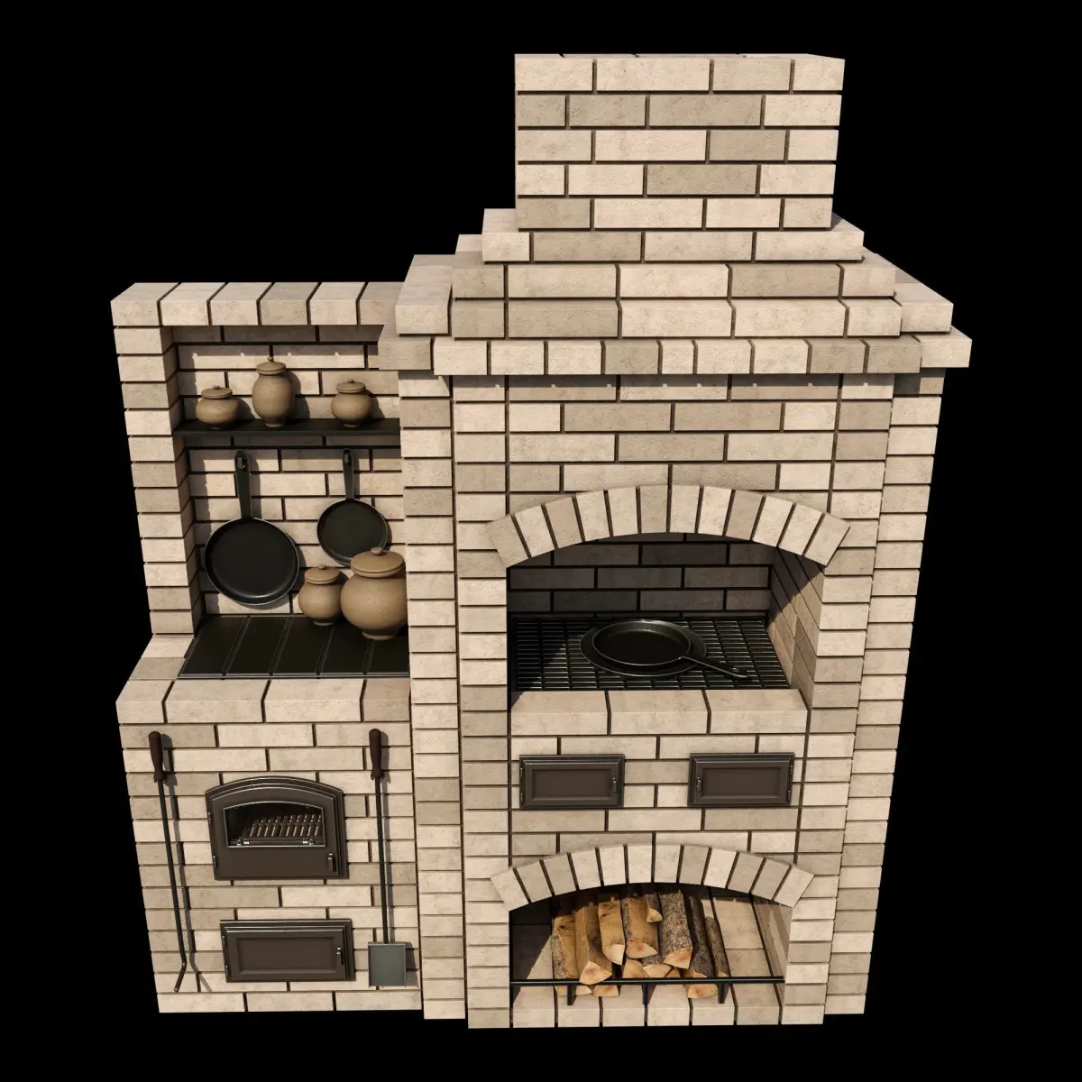 BBQ brick ovenGood model for street visualizationPolygons - 86 168Peaks - 84 676Length - 730 mmWidth - 2100 mmHeight - 2630 mm