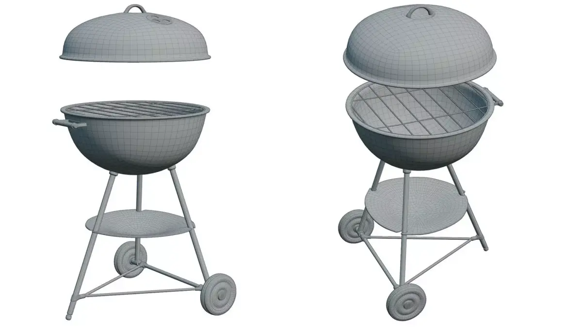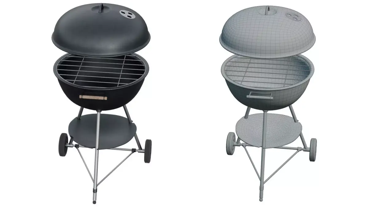 Round barbecue bbq weber style. The model can be used as low poly or as subdivision (turbosmooth) ready.One udim and one material of the PBR standard.Metalic roughness standard, normal map is openGLunit: centimeter.