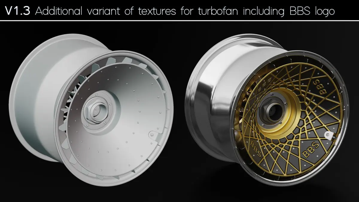 BBS E57 Turbofan 19" Rim/Wheel 3D Model similar to the rear rims which were driven by the Porsche 935.
