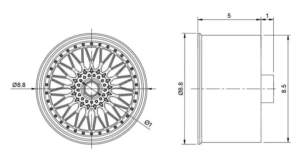 Introducing the ultimate 3D model of Rims for Diecast 1:64! Specially designed for hobbyists who love to customize their diecast cars, these rims are perfectly sized for your Hotwheels, Tomica, Majorete, and other diecast cars in the 1:64 scale.
