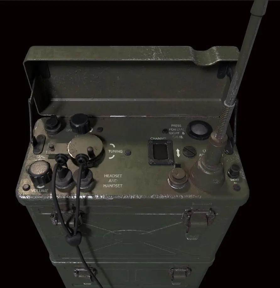 Game Asset of a Military Radio used by the US Army Signal Corps. The radio was to be worn by a soldier via back /shoulder straps and carried into battle.