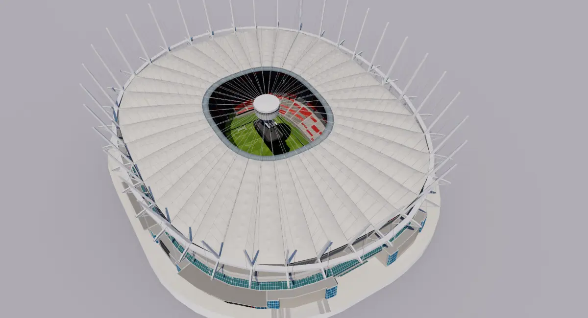 Model created with soccer pitch. Possibility of creating another sport inside. Ask before buying. Starter model. Approximate dimensions. Bleachers and seats in 2D texture. Render setup not included.