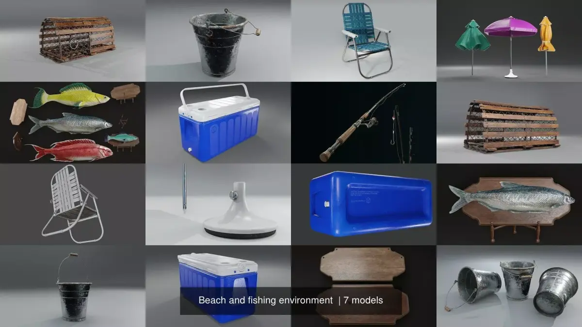 A Low-poly 3D collection of beach and fishing environment made in Blender 3.0