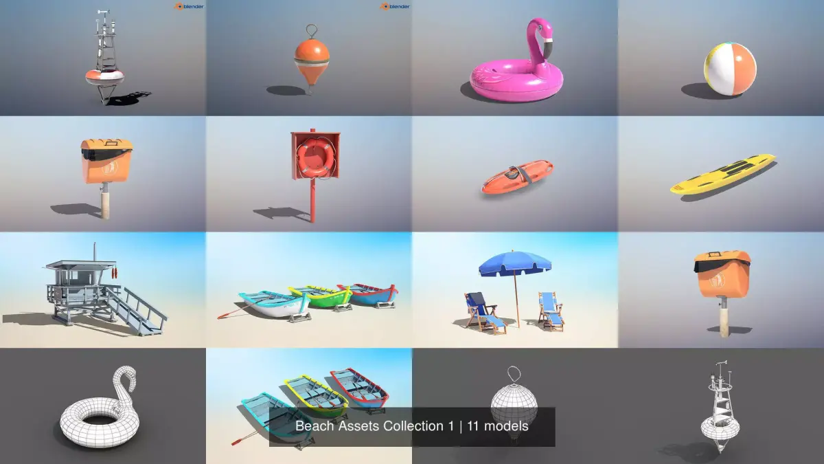 High-quality low-poly 3D collection of several Various Types of Beach Toys and Assets.