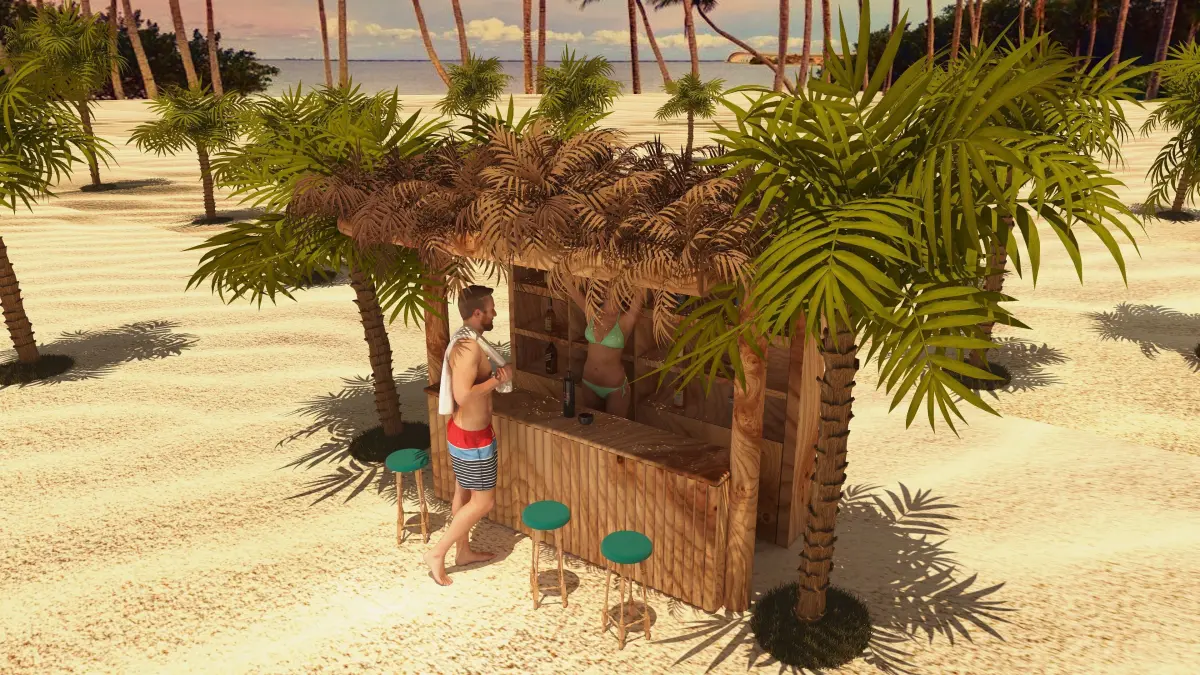 Beach Bar 2 is available with 3D Studio Max 2017 version and also added 2019, 2022 version and rendered in 4K resolution in the V-Ray 3.6 - 5 - 6 plugin. 1:1 Scale in real sizes. Unit is centimeters. Includes all scene, lighting, UV's, cameras, materials and textures. The V-Ray Preset and Layer Tree Preset options have been set optimally. Many file formats are available. The visuals are in 4K resolution.