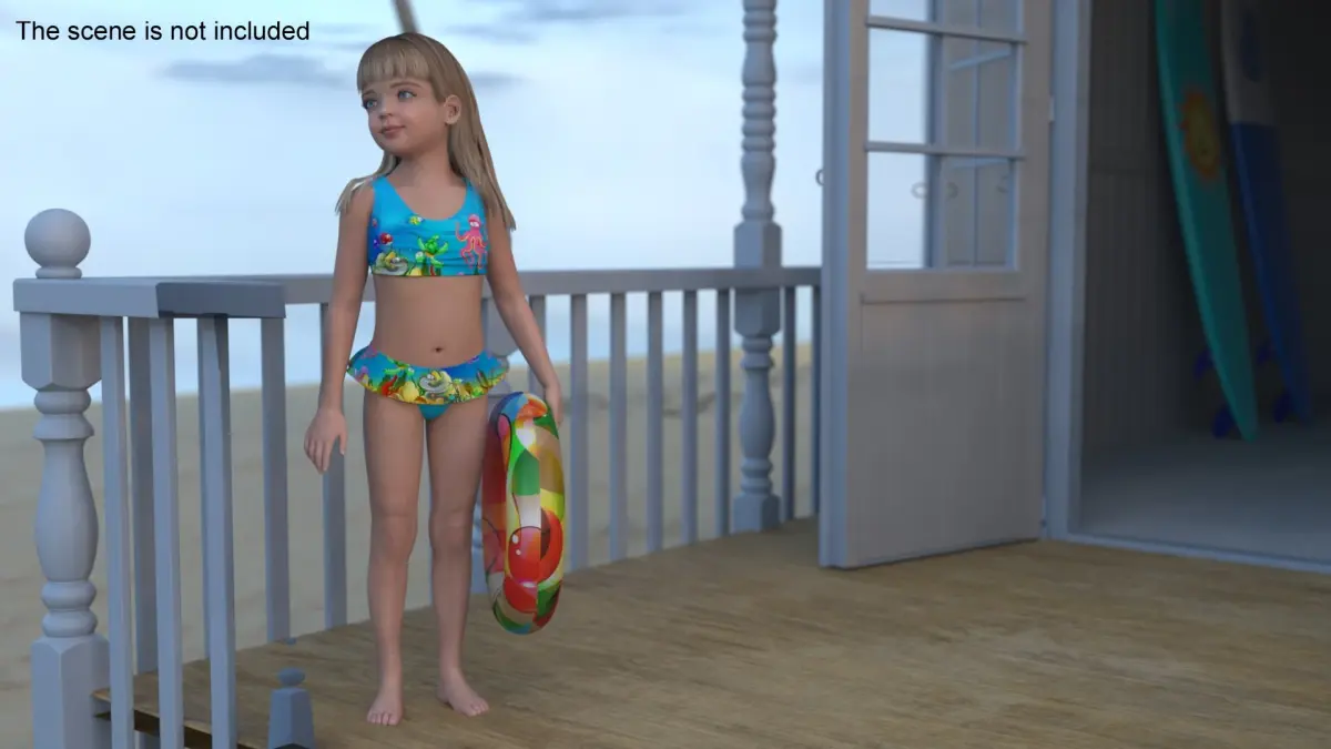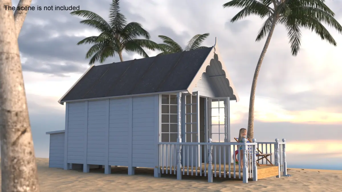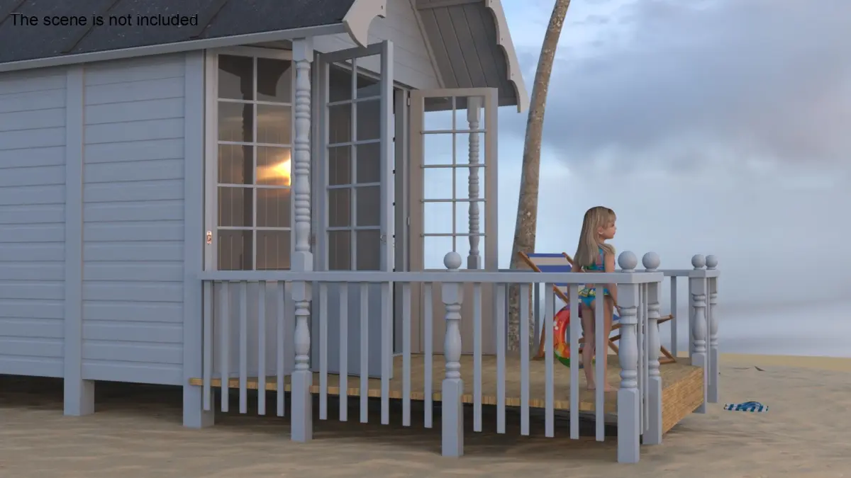 Beach Hut on Sea Shore is a three-dimensional model of little girl (female kid) with a charming seaside cabin, perfect for those looking to enjoy a cozy beachside experience.