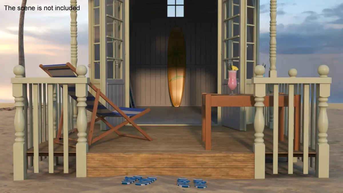 Beach Hut with Patio Zone is a high quality, photo real 3d model that will enhance detail and realism to any of your rendering projects. The model has a fully textured, detailed design that allows for close-up renders, and was originally modeled in 3ds Max 2020 and rendered with V-Ray. Renders have no postprocessing!