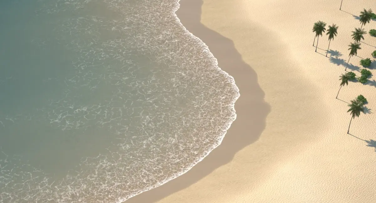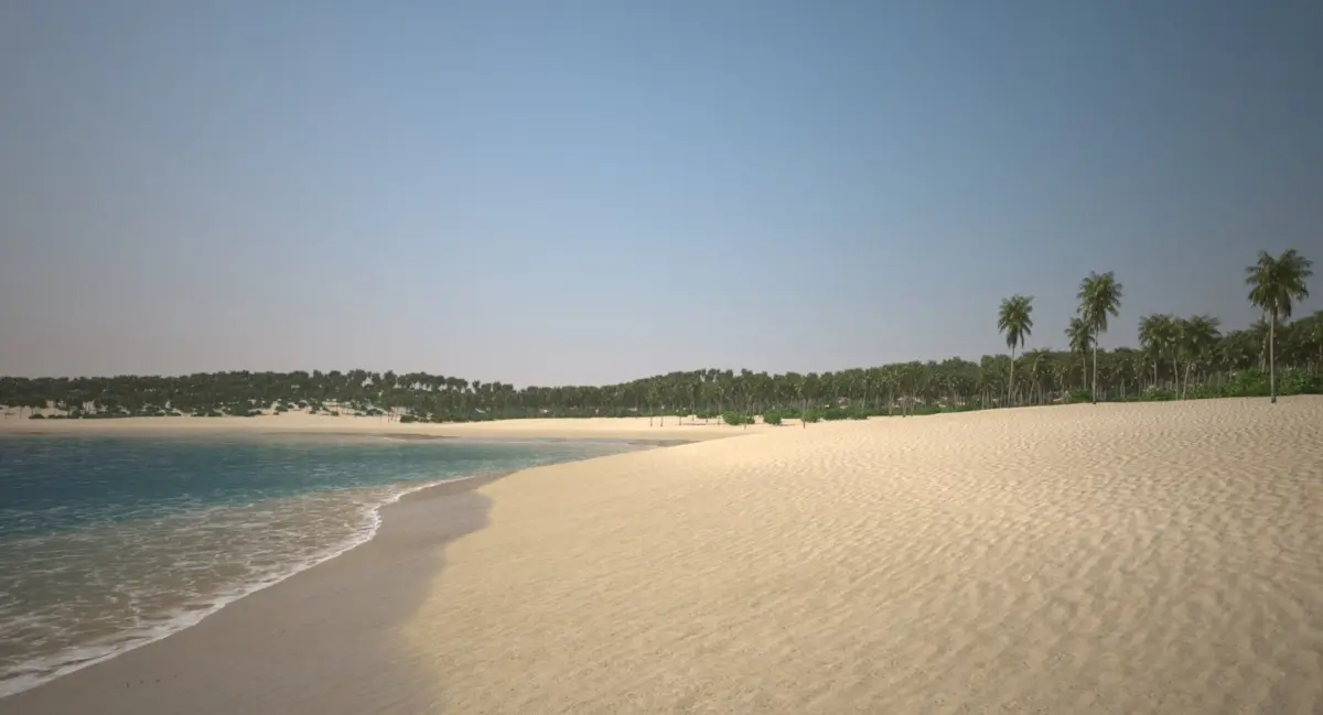 Scene of a palm beach with an automated shoreline/ ocean intersection.