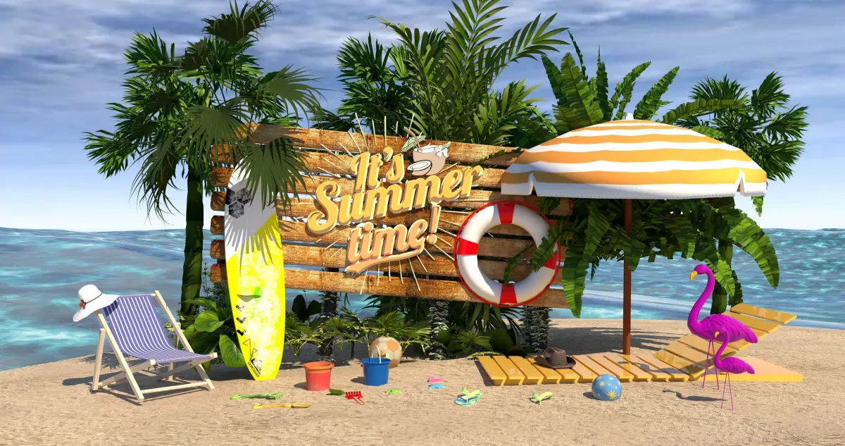 Hey ,summer time file have more than 17 items for beach , all items are separated in nullsthere are all 3d files and materials that you need .the project created with cinema 4d r21 and corona render