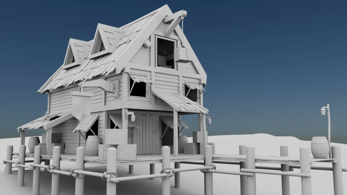 This is a high-poly 3D model created in Maya 2023, textured with photoshop and some downloaded image with Arnold render. I am giving the whole file with so many wooden assets like box, barrel, lights and planks.
