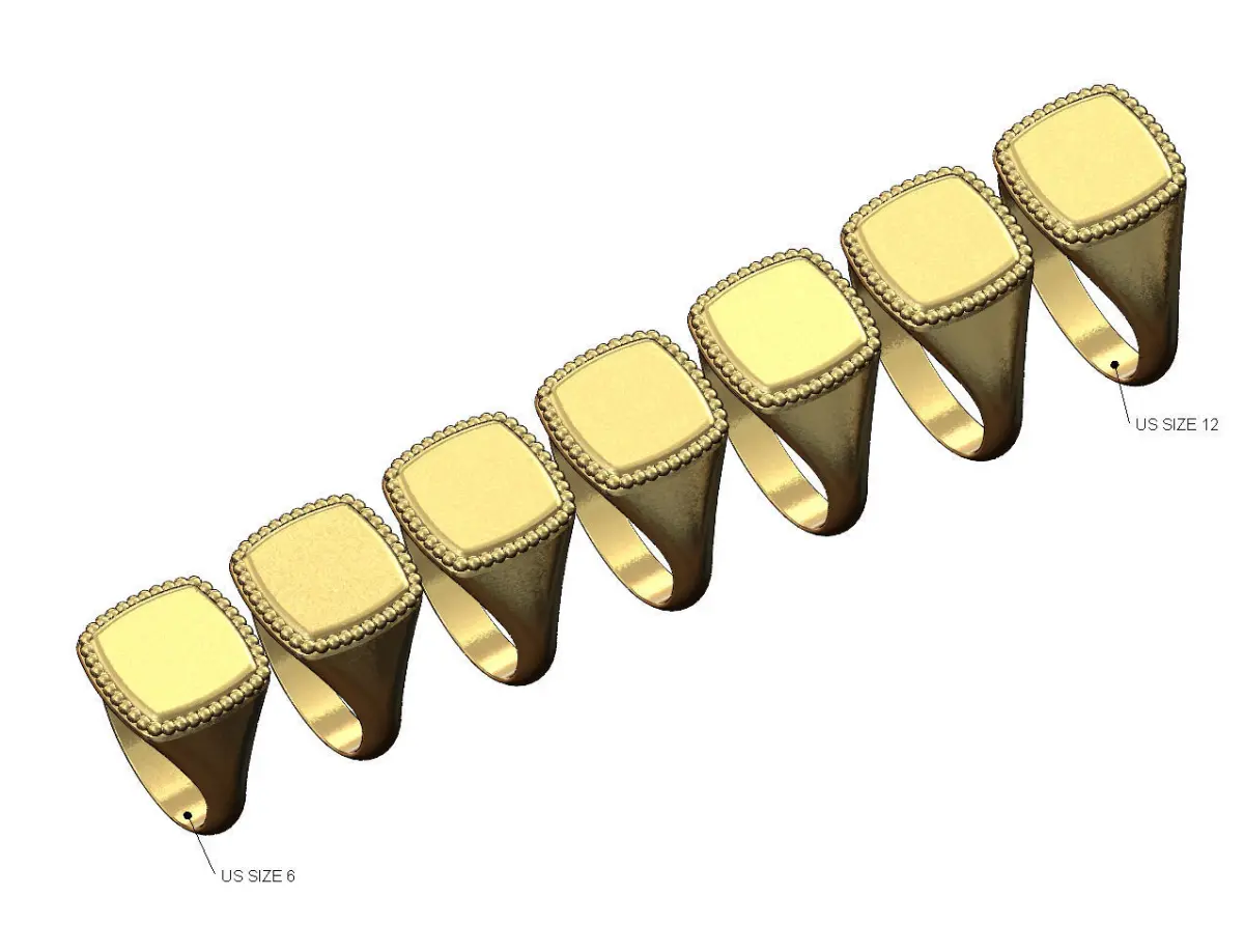 Beaded square platform signet ring