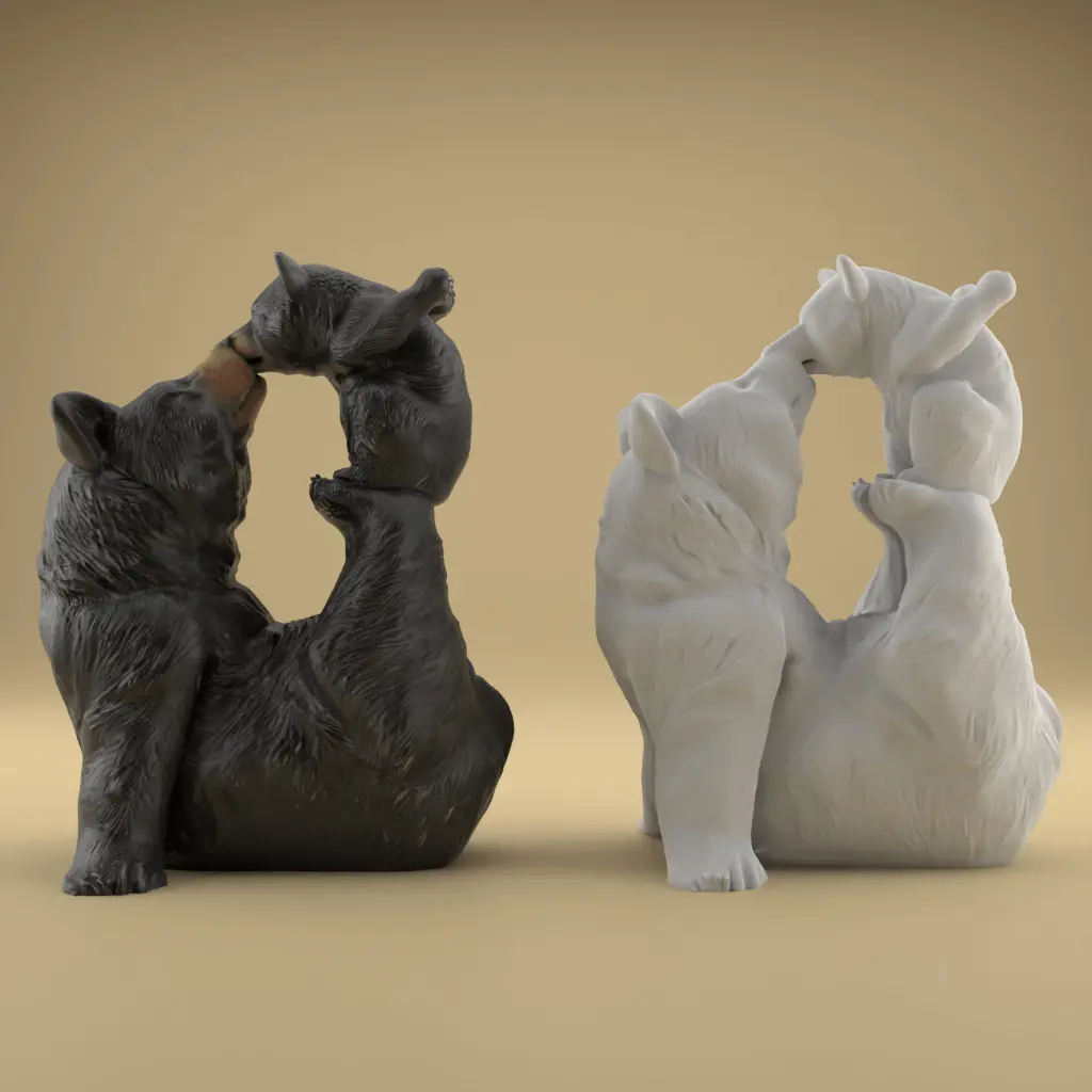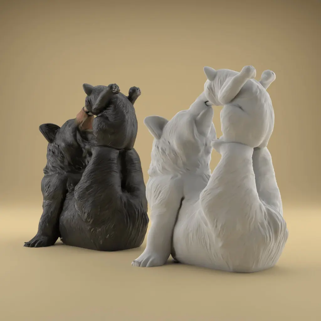 Printing SuggestionsConsider printing this model using high-quality PLA or resin to capture the intricate details of the bears' fur and expressions. Supports may be necessary to ensure stability during the printing process, especially for the extended limbs.