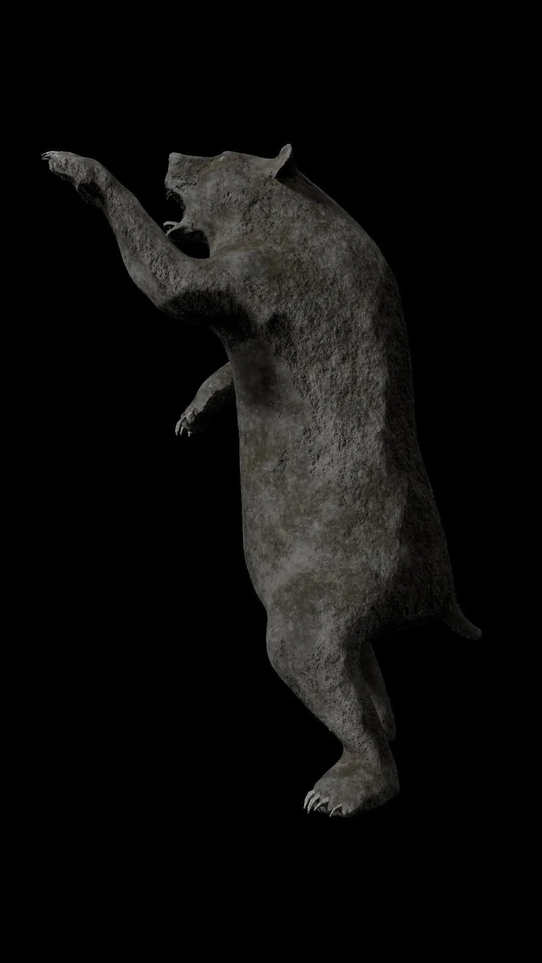 The bear statue in attack pose is an impressive and detailed stone sculpture, with high-resolution textures that give a smooth and realistic finish to the piece. Although it doesn't have many details, it's still possible to appreciate the tense musculature of the bear, its sharp claws and powerful teeth. The model can be used in computer graphics projects, games, or even for 3D printing, and will certainly be an impressive addition to any scene.
