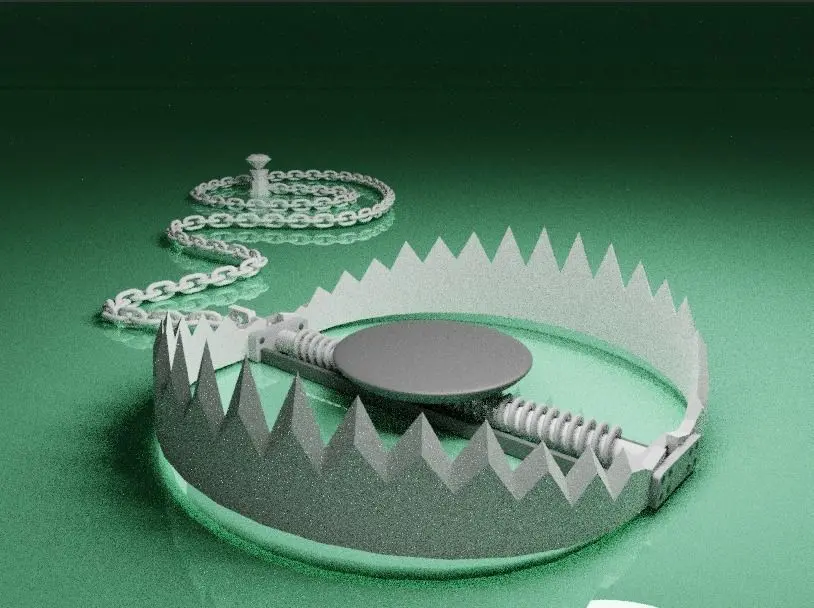 __Awesome looking minimal bear trap with chain on it.created with Blender 3.0 & rendered through cycle and camera angle was orthographic. you can use this as a template. __