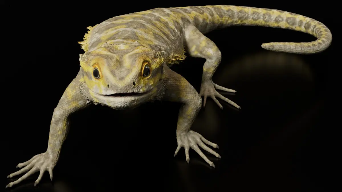 Rigged and animated Bearded Dragon. Originally created with Maya 2023, sculpted in Zbrush 2022, rigged and animated in Maya and final images rendered with Arnold Render. The character was modeled in real-world scale, the length is approximately 55,8 cm, the eye size is approximately 1 cm and tongue lenght is approximately 4,3 cm.