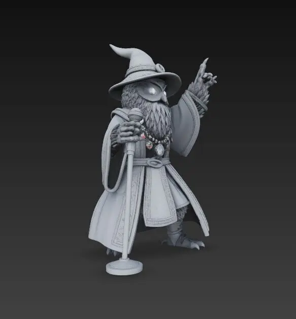 This enchanting 3D print model brings together ancient wisdom and electrifying stage energy. A bearded wise owl, dressed in wizard robes and radiating rockstar charisma, holds a microphone while flashing the iconic rock on gesture.