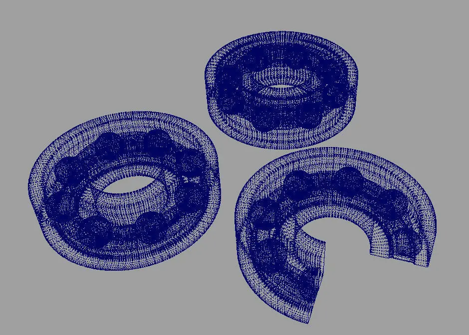 Detailed highpoly bearing set with cut outed version where visible the inside part.