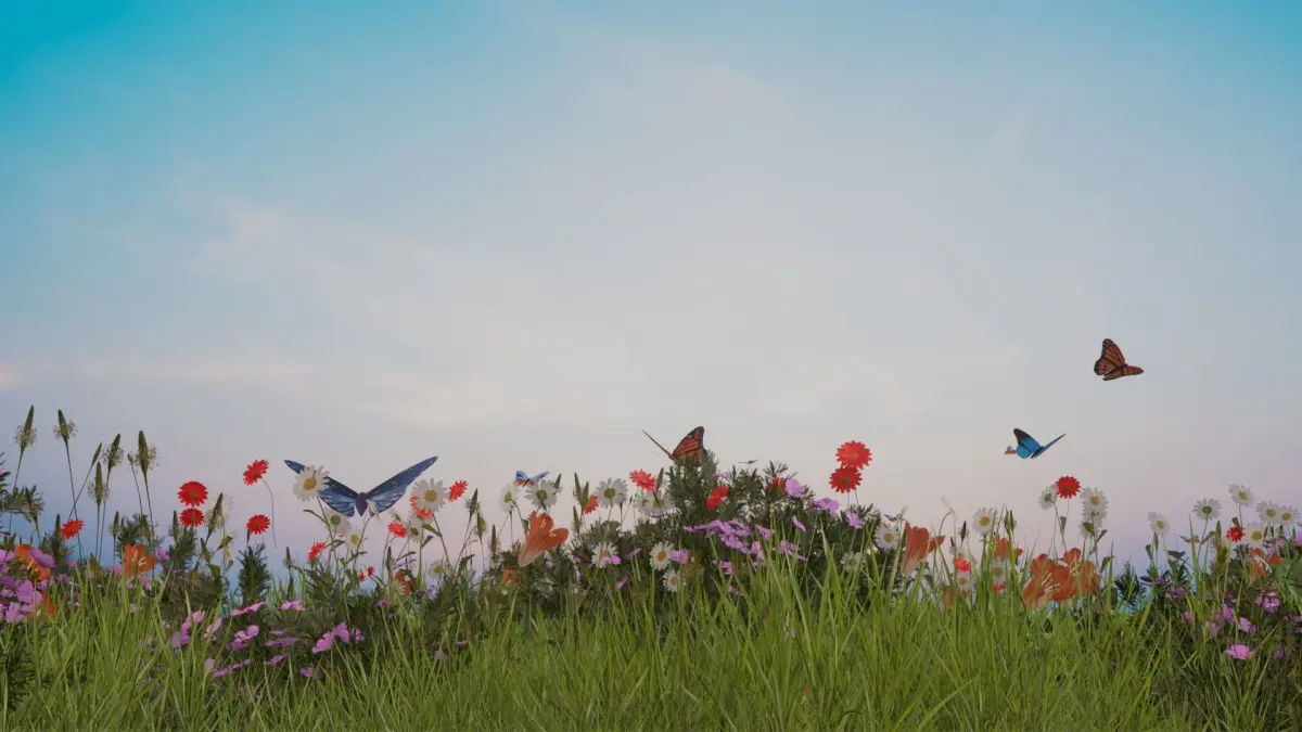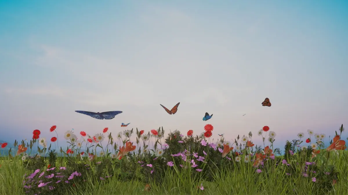 Beautiful Animated Windy Grass field with Butterflies made in Blender 3.3 !