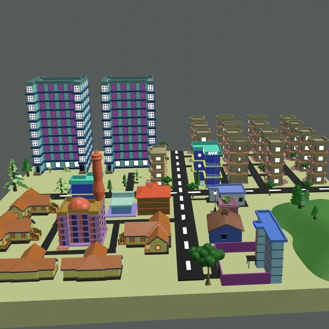 This object has been developed for various cartoon animation and game industries.Various information about this object is given below: 1: Houses : a) There are various houses in this city which are very beautiful.