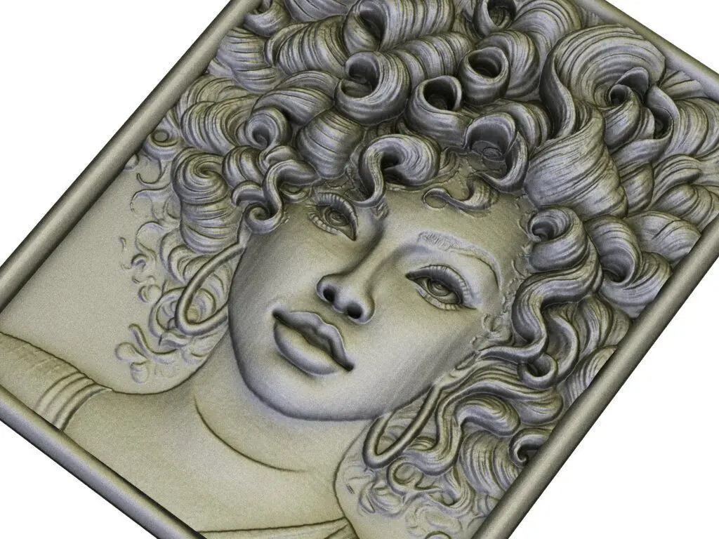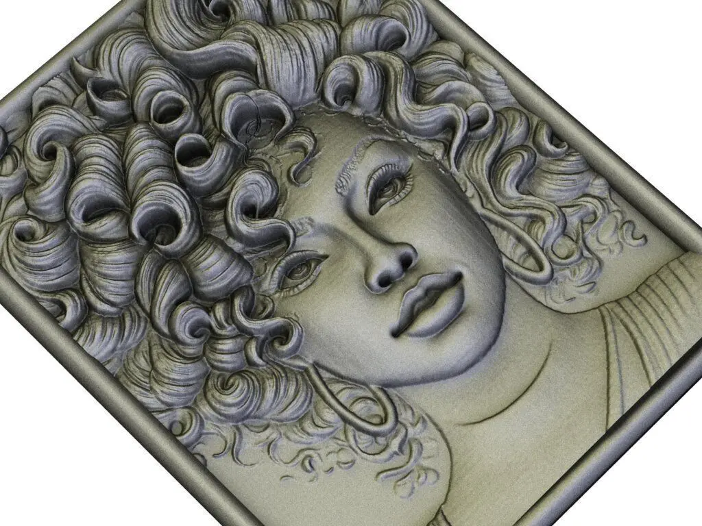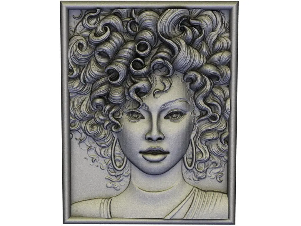 In this striking piece of art, the artist masterfully breathes life into wood, capturing the essence of beauty, strength, and grace. This wooden bas-relief features a young woman whose serene yet dignified expression conveys a quiet power. Her voluminous, coiled hair, piercing eyes, and minimalist yet elegant attire embody a natural majesty that is both timeless and profound. Every delicate detail — from the texture of the skin to the organic form of each curl — has been meticulously sculpted, creating a presence so lifelike that one might expect her to speak at any moment.