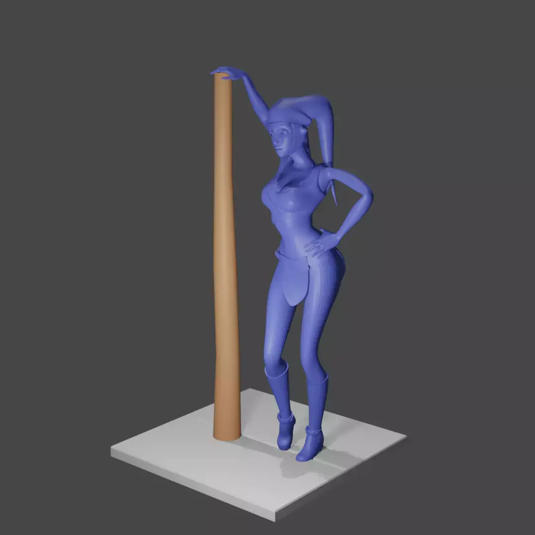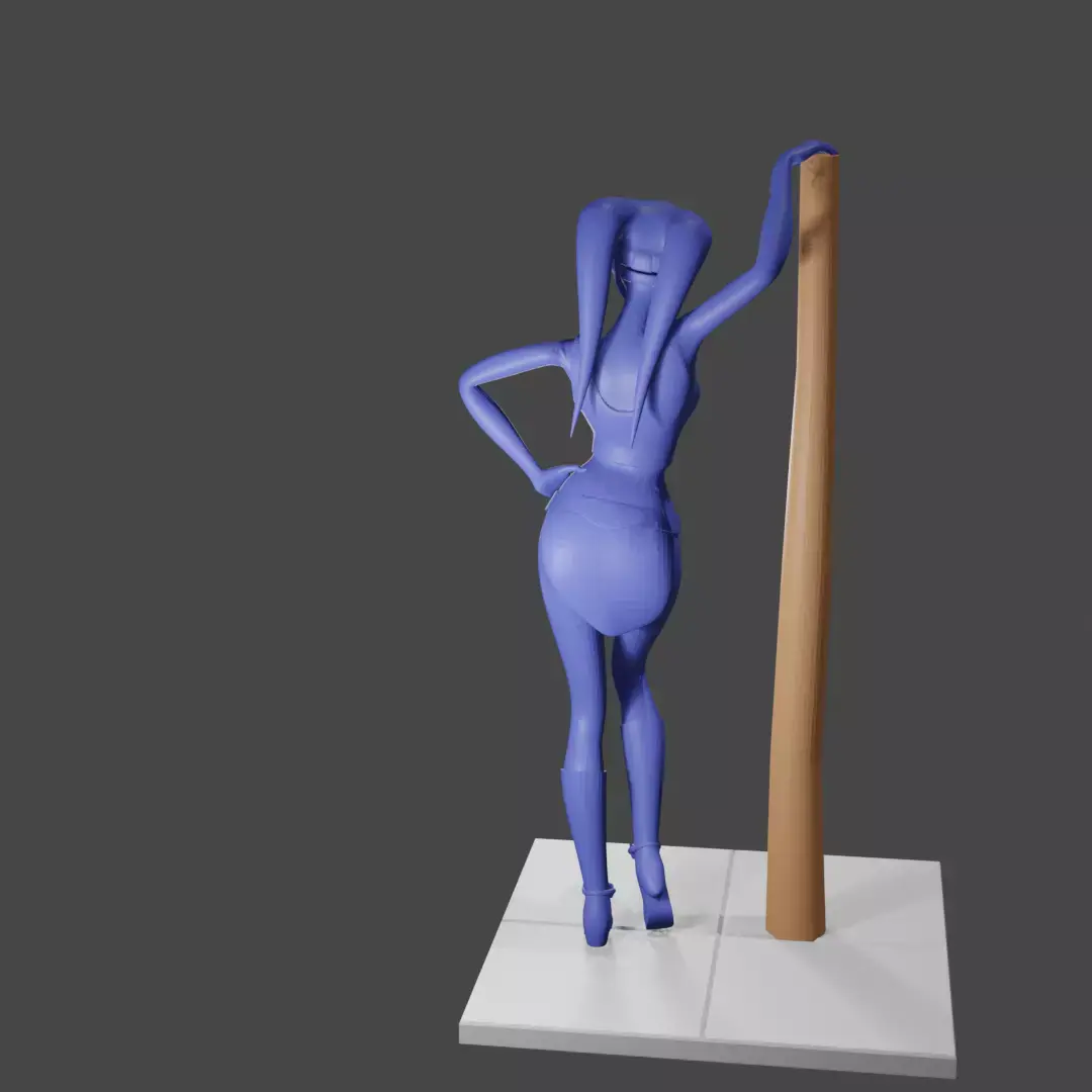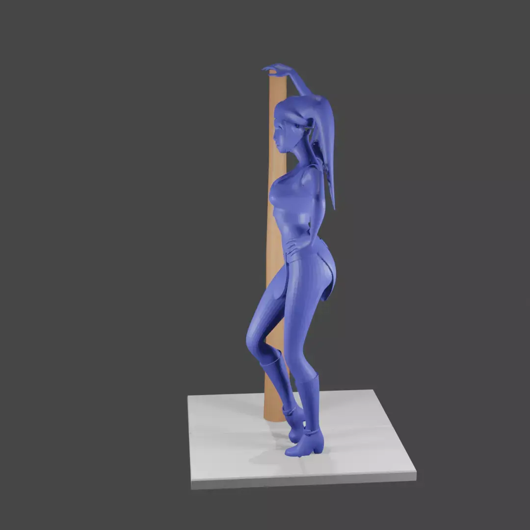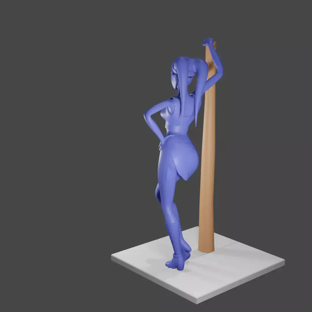 This STL file features a beautiful female alien posed gracefully as she leans on a tall sci-fi pole. Her form is elegant yet strong, with a sleek, stylized bodysuit and alien head-tails that flow naturally over her shoulders. The model’s stance conveys poise and confidence, making it a striking display piece for any science-fiction or fantasy collection.