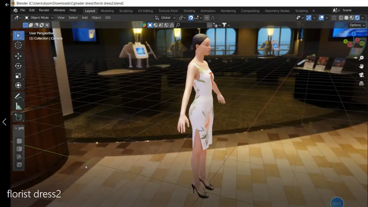 Beautiful florist sleeveless party dress. I already gave you the texture files and .fbx file and .abc file and .blend file.Ready for virtual reality, low poly games, high poly games, and other real-time apps