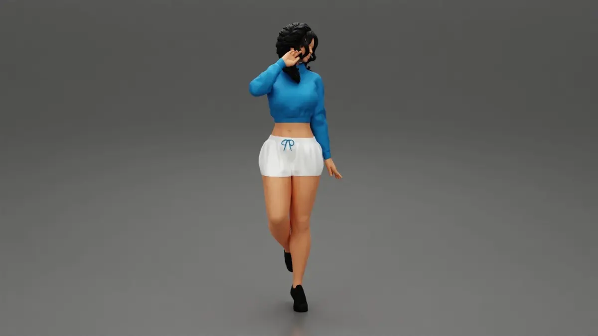 Home Catalog beautiful girl in lini short and high neck shirt 3D print model