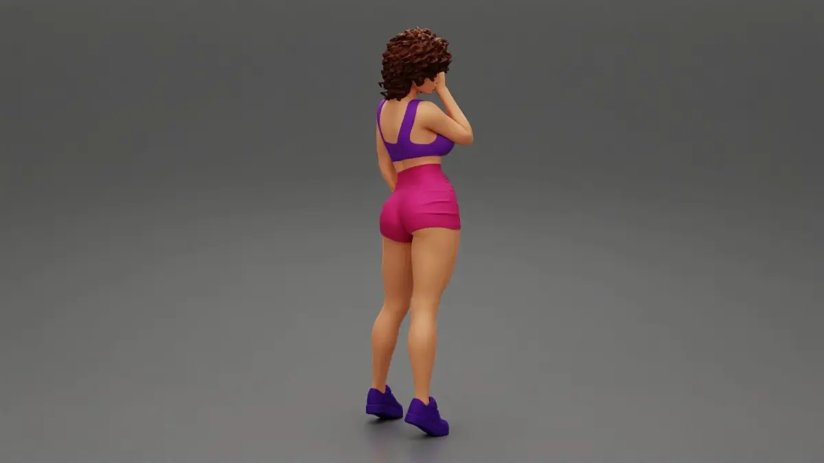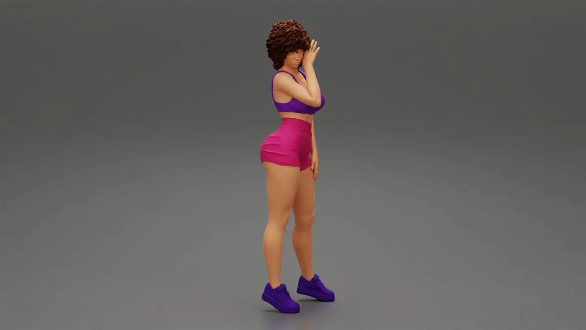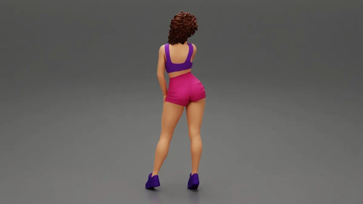 Home Catalog Beautiful Girl With Curly Hair Wearing Mini Short and sneakers 3D print model