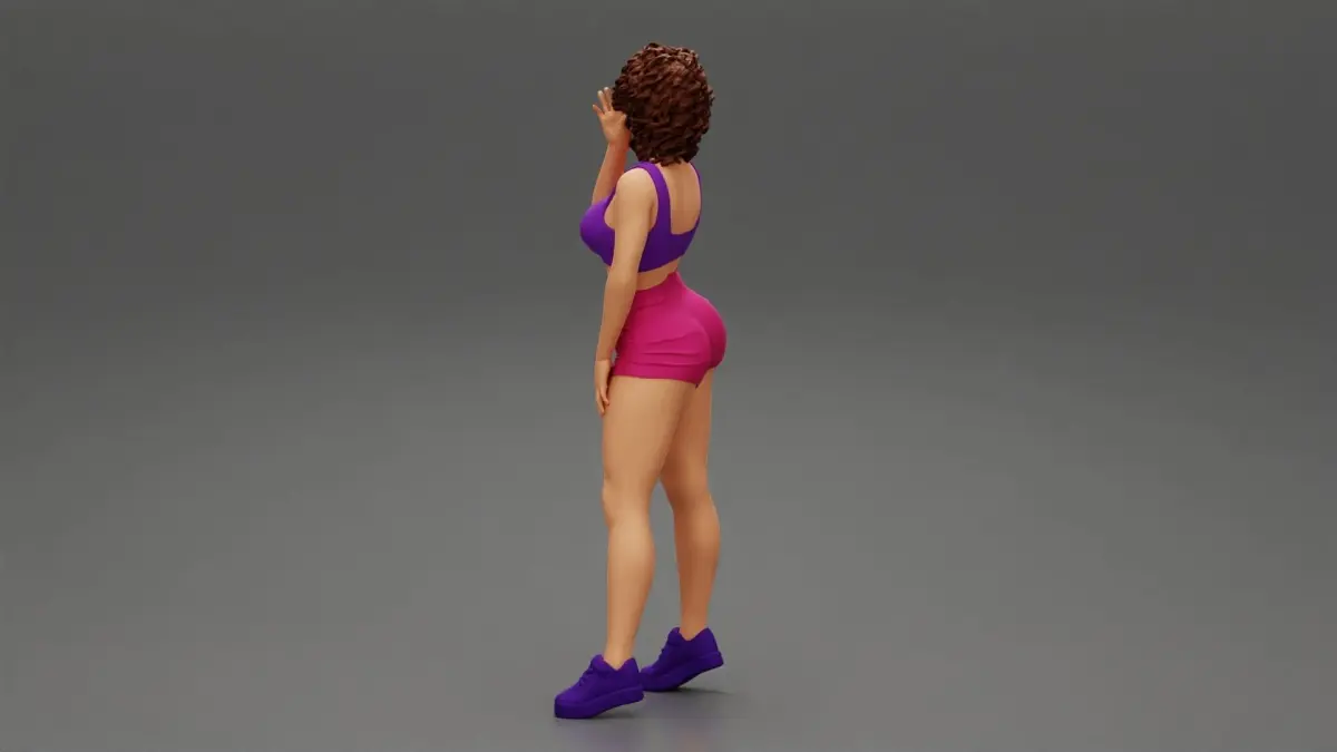 Beautiful Girl With Curly Hair Wearing Mini Short and sneakers 3D print model