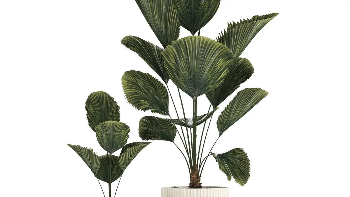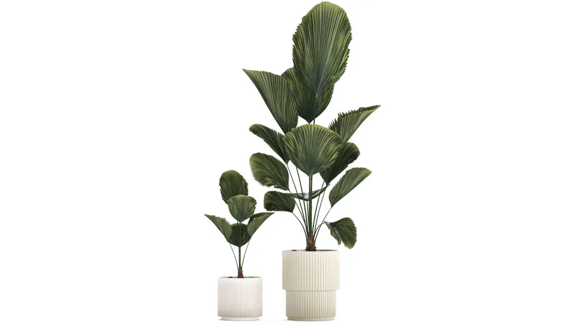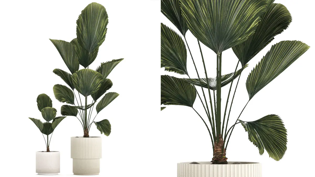 Beautiful licuala palm tree in flower pots for decoration
