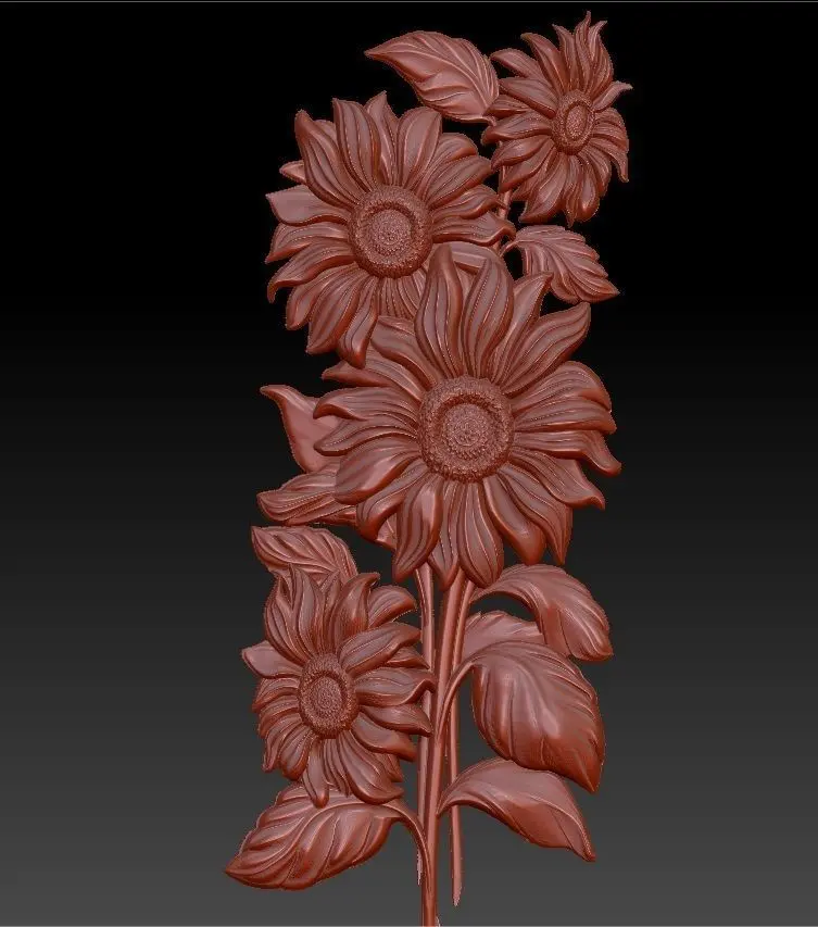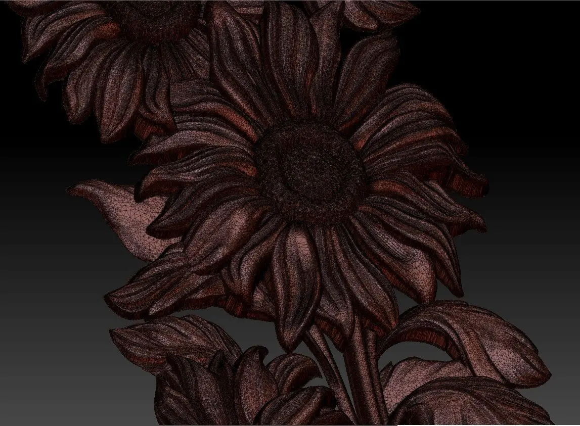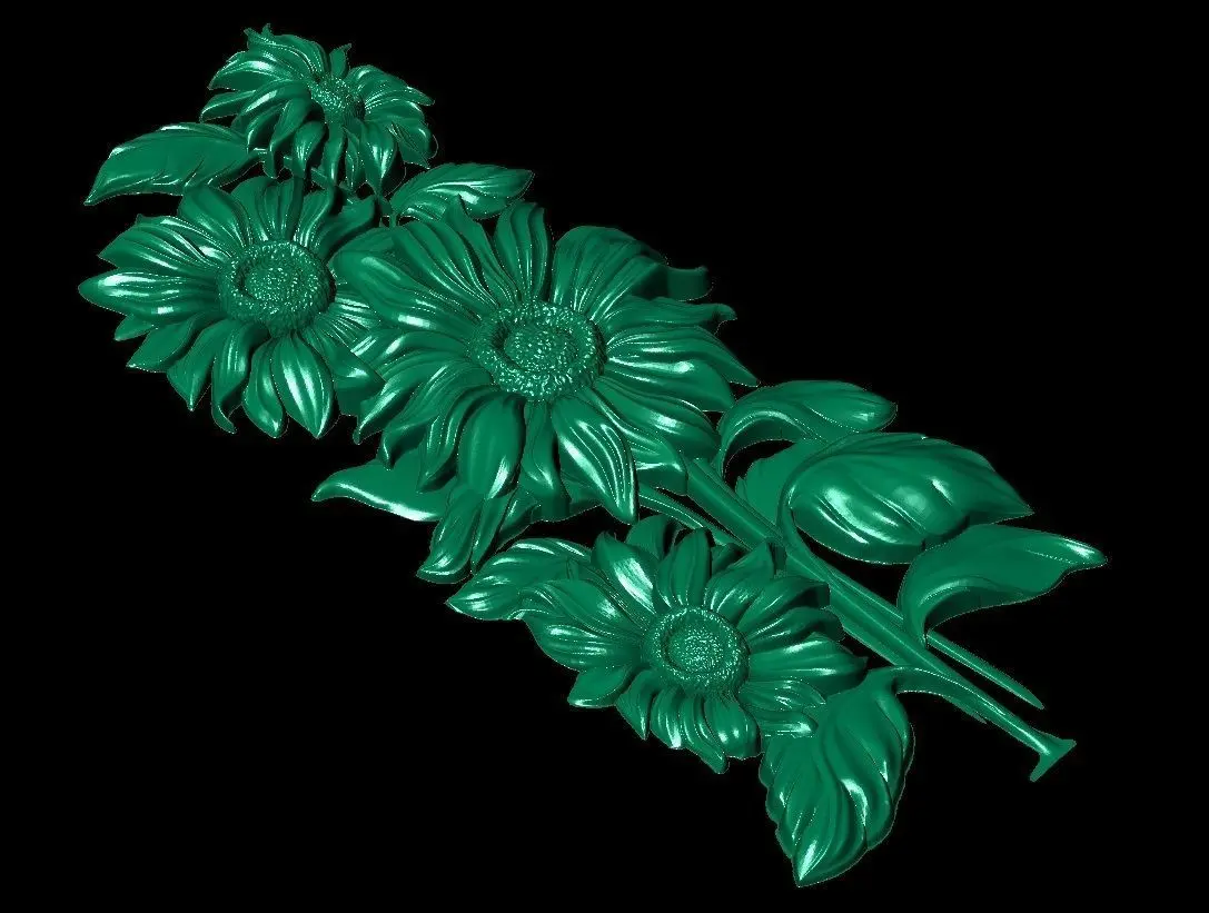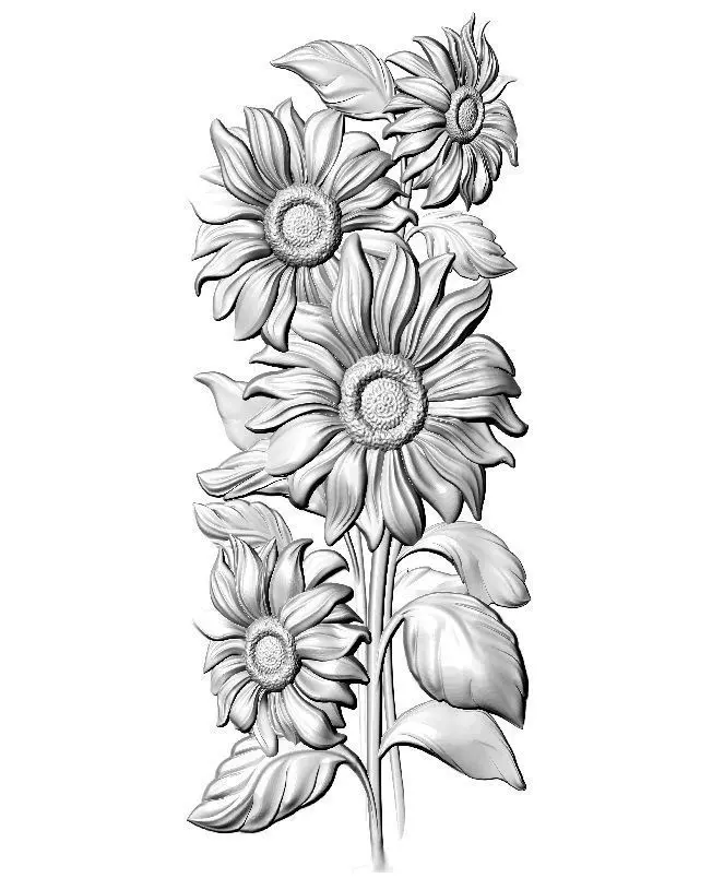 beautiful relief sunflowers 4 . model sizes-232x88x9.5 mm. vertices 7119696 triangles 2373232 .90% of my 3d models have been checked: made wax and finished product .Model are for cnc machine. if you need to change the size of this product - write to me, I will definitely do it.High poligonal model.