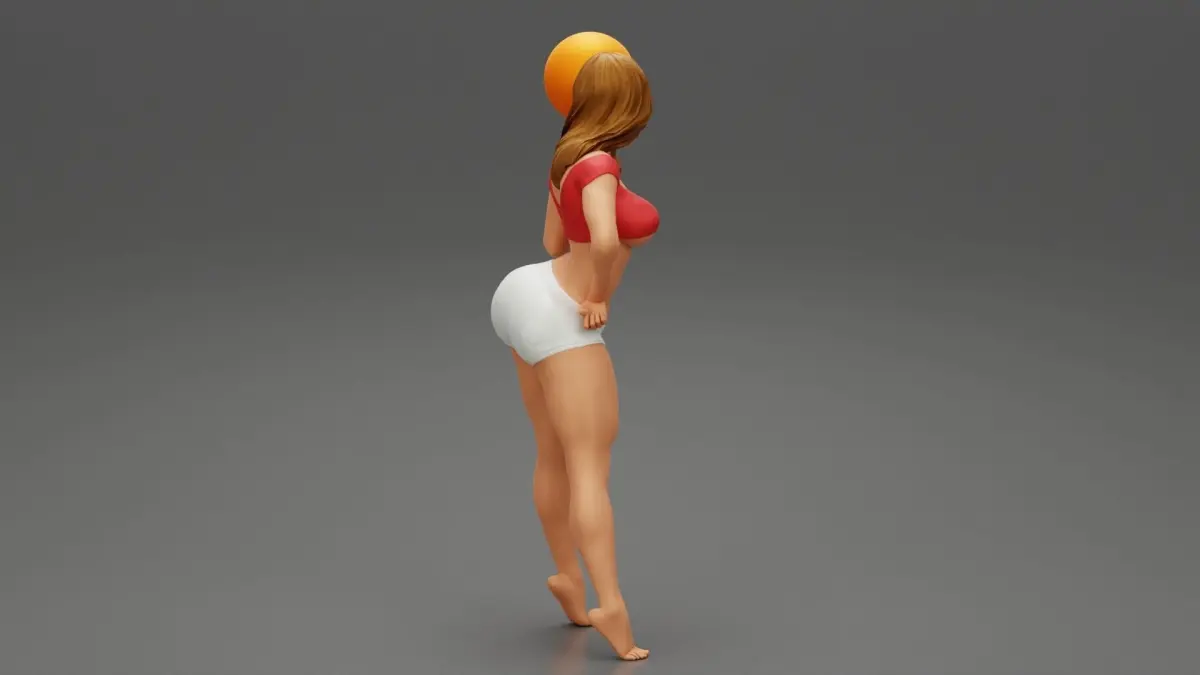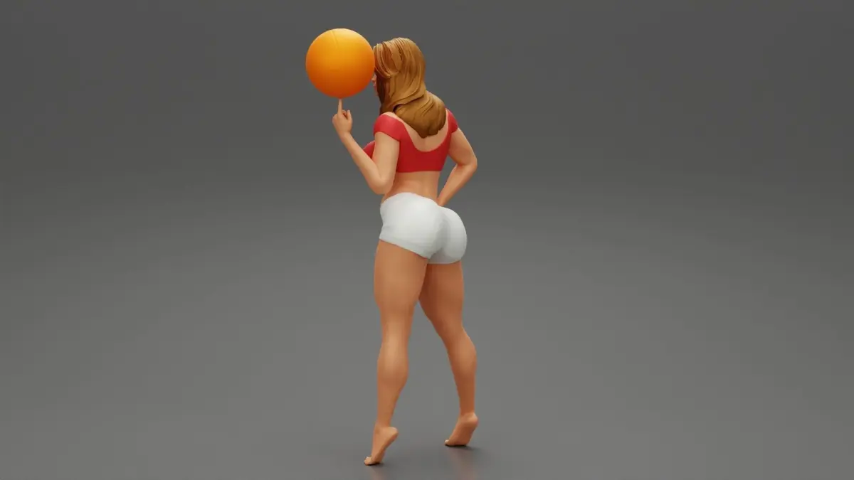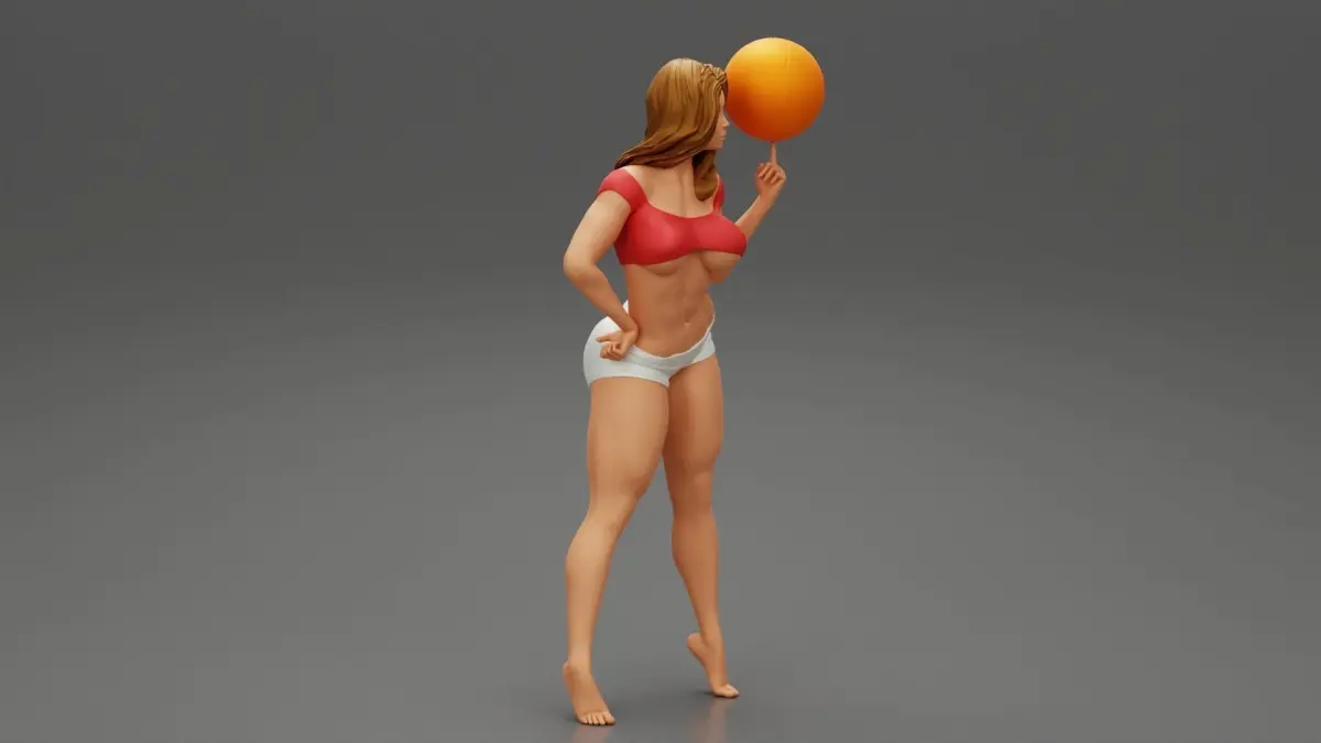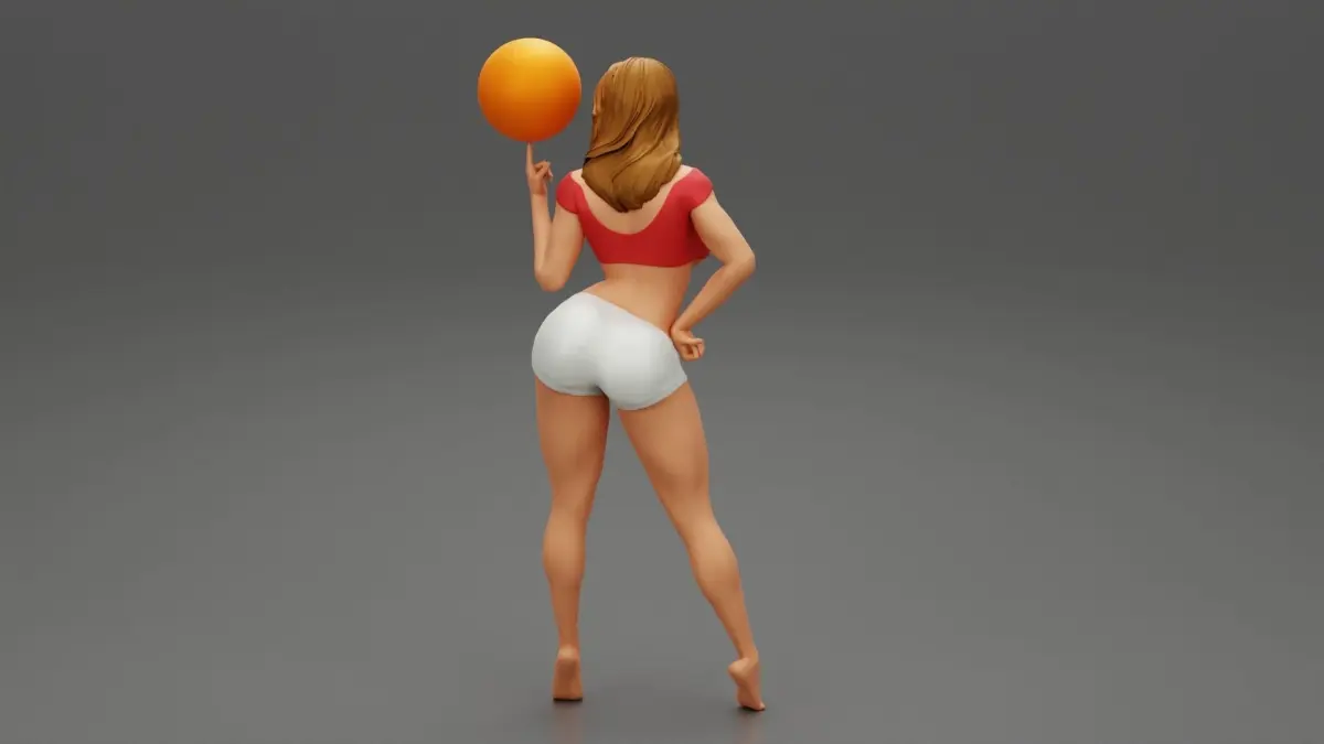 Beautiful Young Sporty Girl Playing With the Ball on the Basketball 3D Print Model