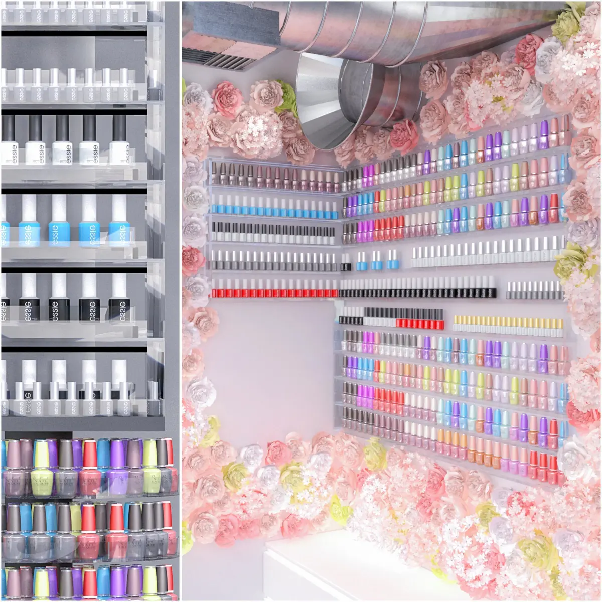 A high-quality and detailed beauty salon model with flower and nail polish decor.