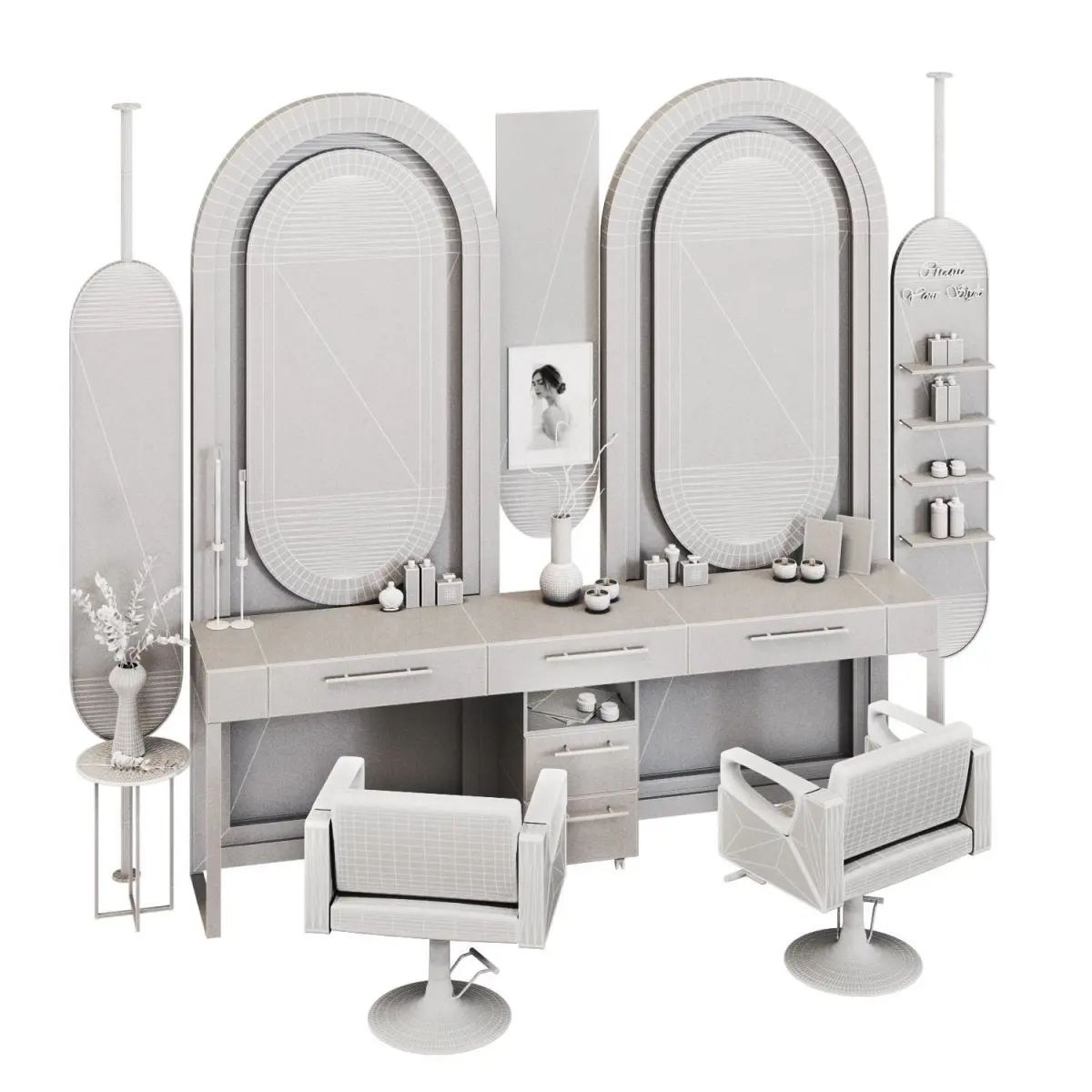 Beauty Salon 3d modelVersion: 2016Units: MetersPolys: 371,459XForm: YesBox Trick: NoModel Parts: 47Render: vray + coronaFormats: 3Ds Max 2016, FBX, OBJ