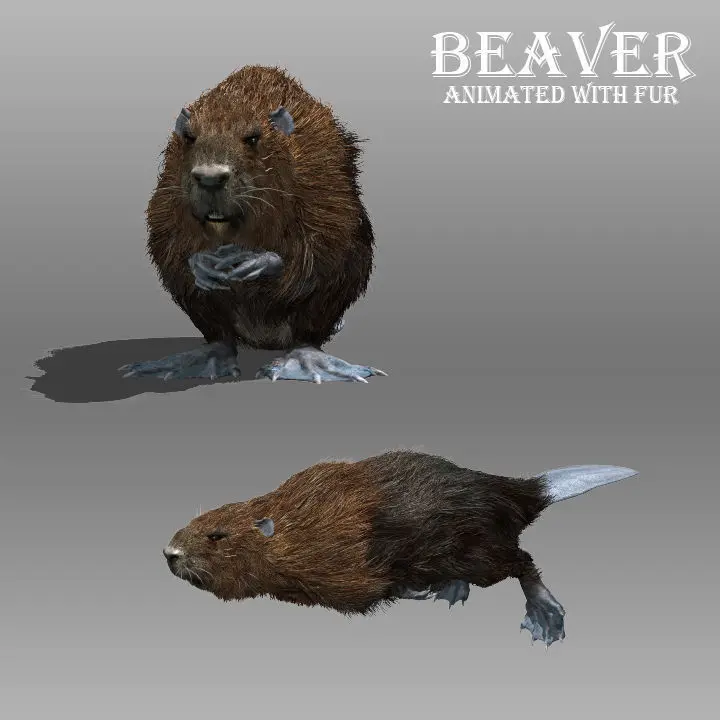 Animated Beaver with Hair and Fur modifier applied.