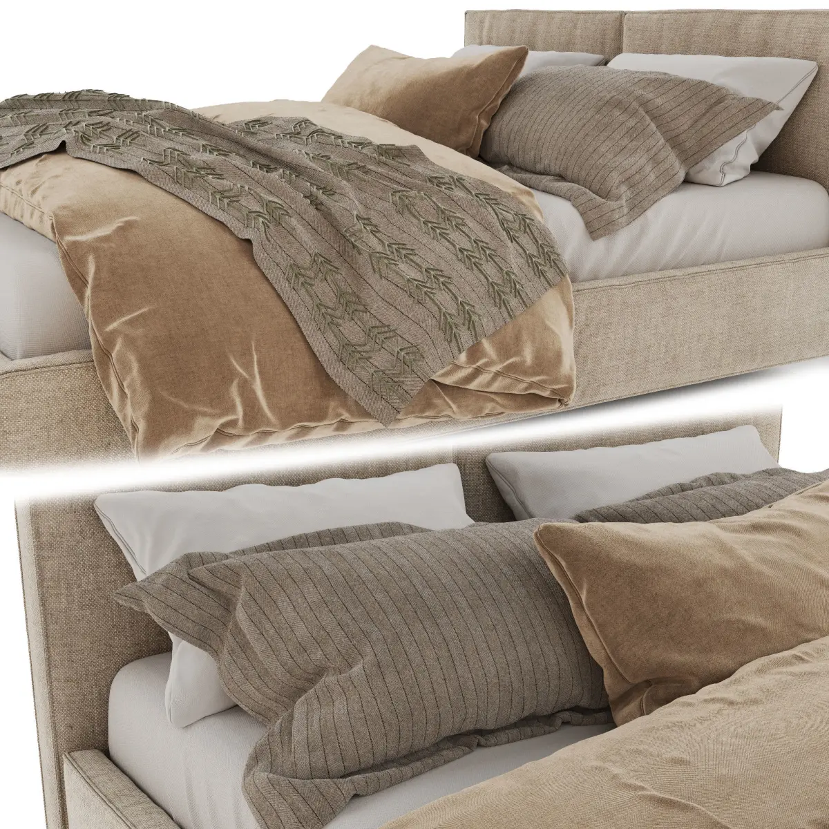 Кровать в современном стиле Frida напоминает теплые объятия, в котором можно укрыться.