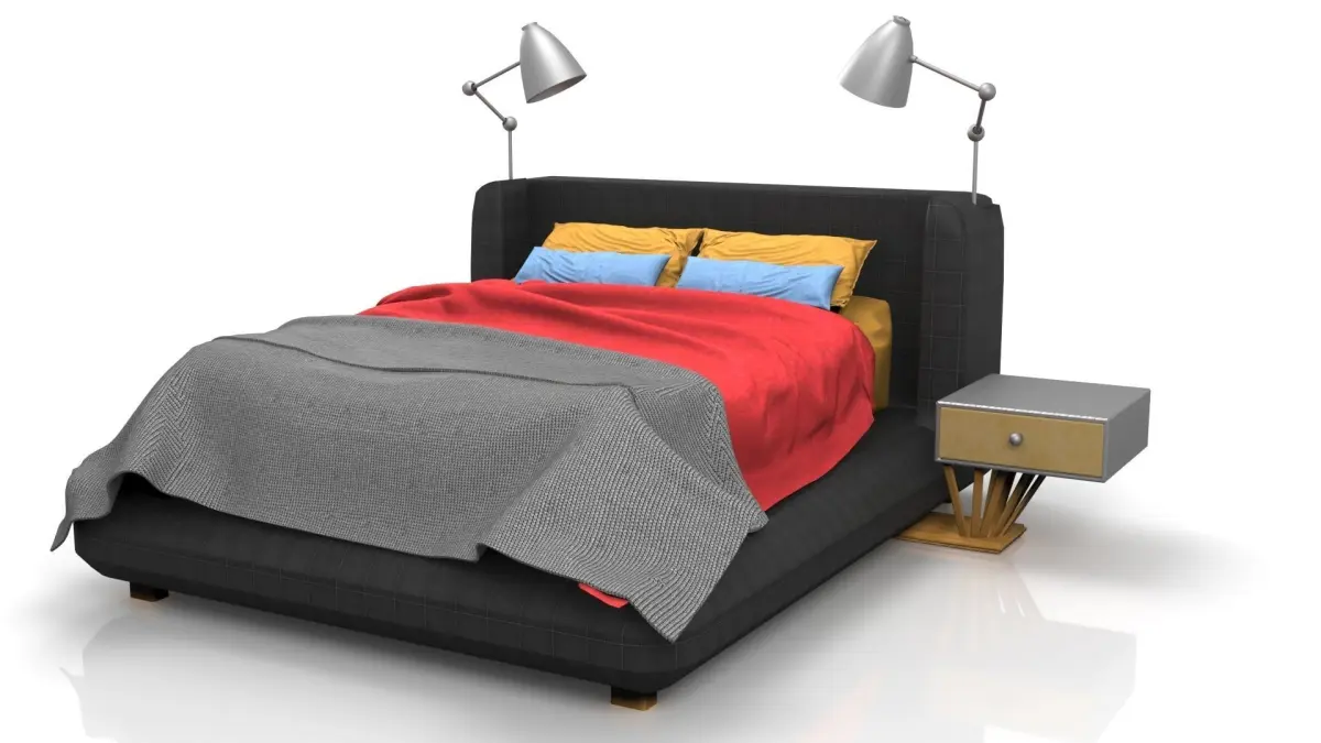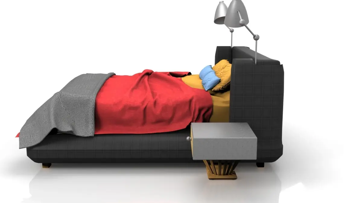 It would be only an experiment but the result is so good (for me) that I have decided to sell it. It's a bed in a large black quilted leather structure with two bedside table s with a circular light wood structure and the drawers in metal grey and gold. I try to use to plugins very interesting and with a cheaper price: Dynamo Mesh for the bed sheet and the blanket and PolyCloth Brushes V2 for the cuschons and the wrinkles of blanket, bed sheet, cushons and pillows.