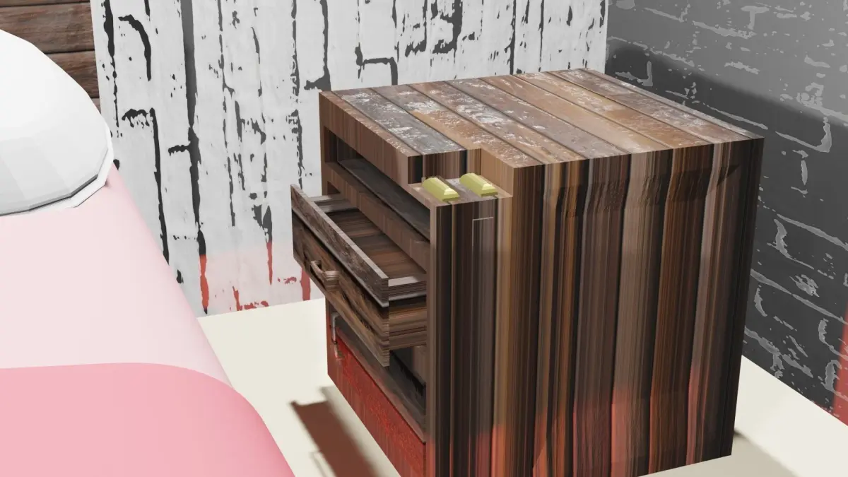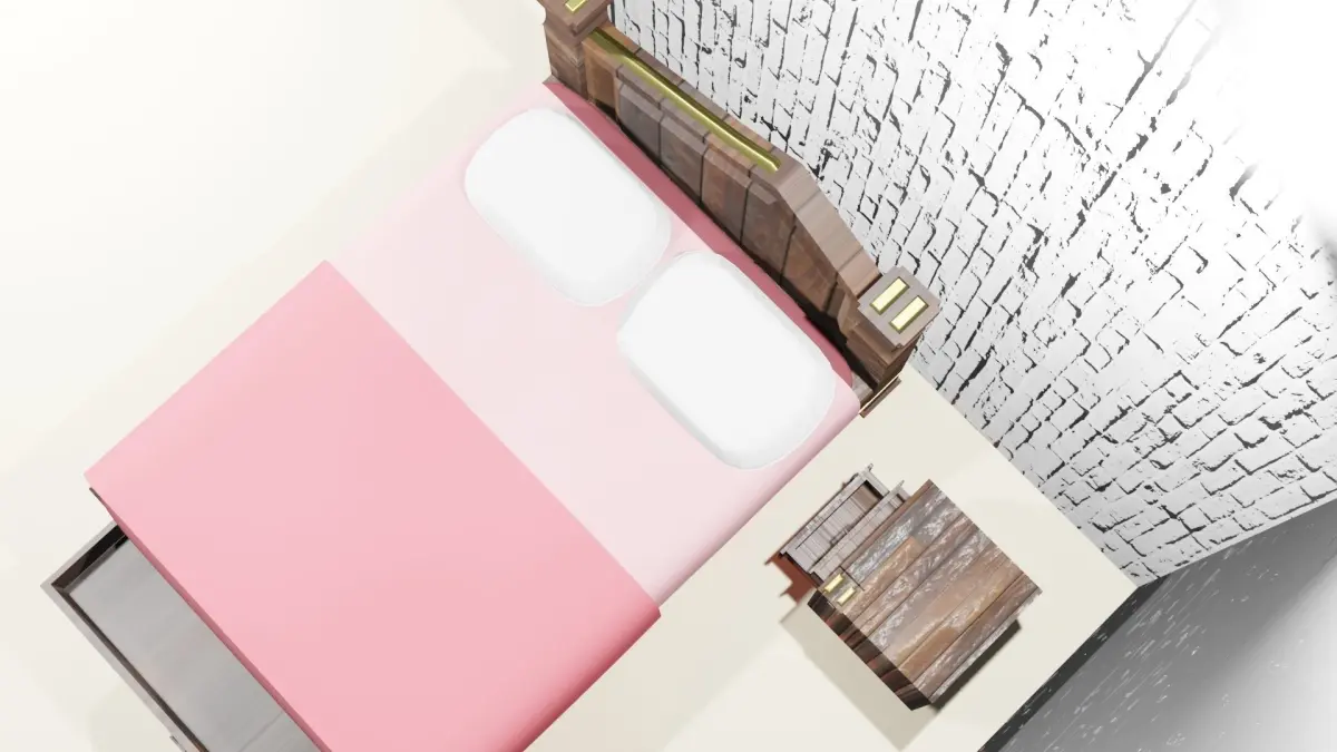 bed model.with pbr texturing Wooden bed and small table.Has a pillow and animated bed sheets.Pbr texture with normal, bump, height map textures.