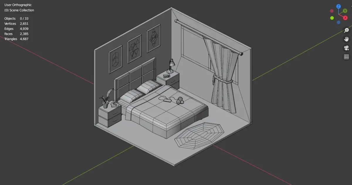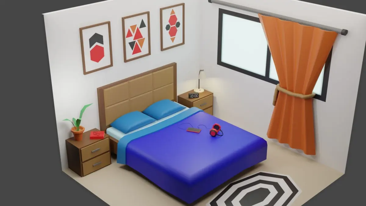 This set includes 20 unique props: bedside tables / bed / pillows / curtains / plants / appliances / rug and accessories and much more!