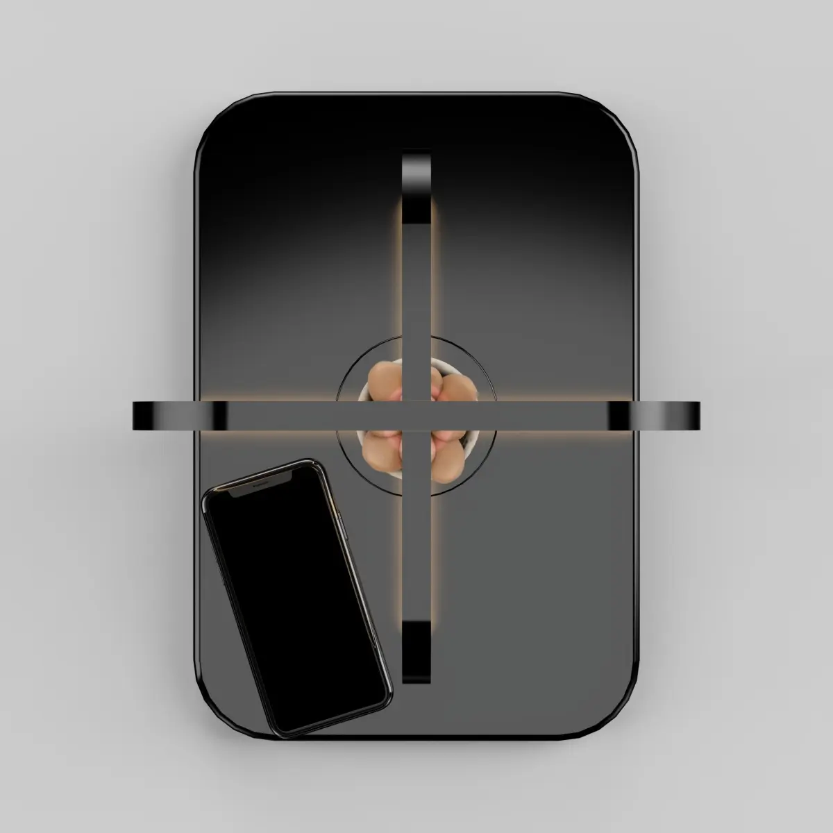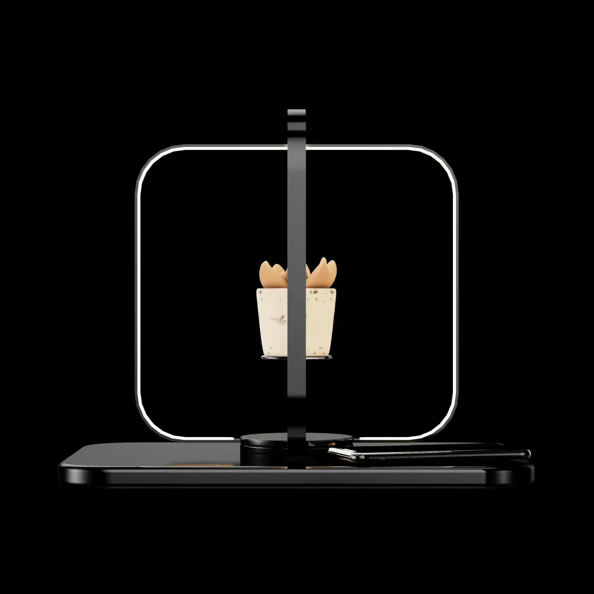 This is a rotating bed side table lamp for a modern bedroom.It has a display piece space in the middle where one can put anything.The base doubles as a wireless charging pad for ones mobile.