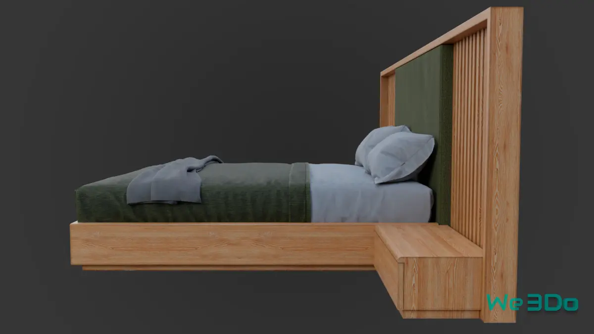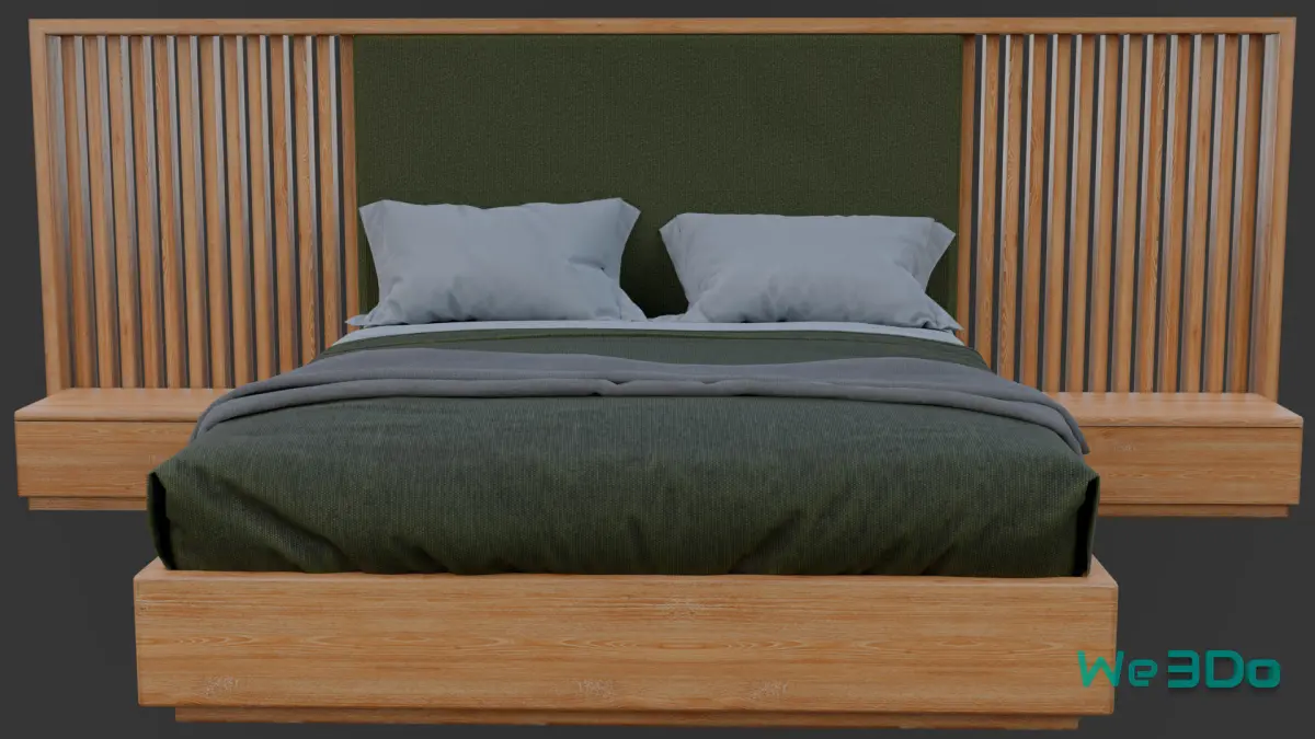 3D Modeling of a Bed with Vertical Slatted Headboard with textures 4k.