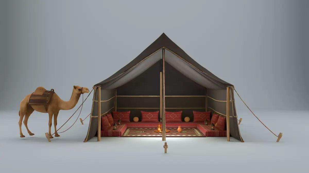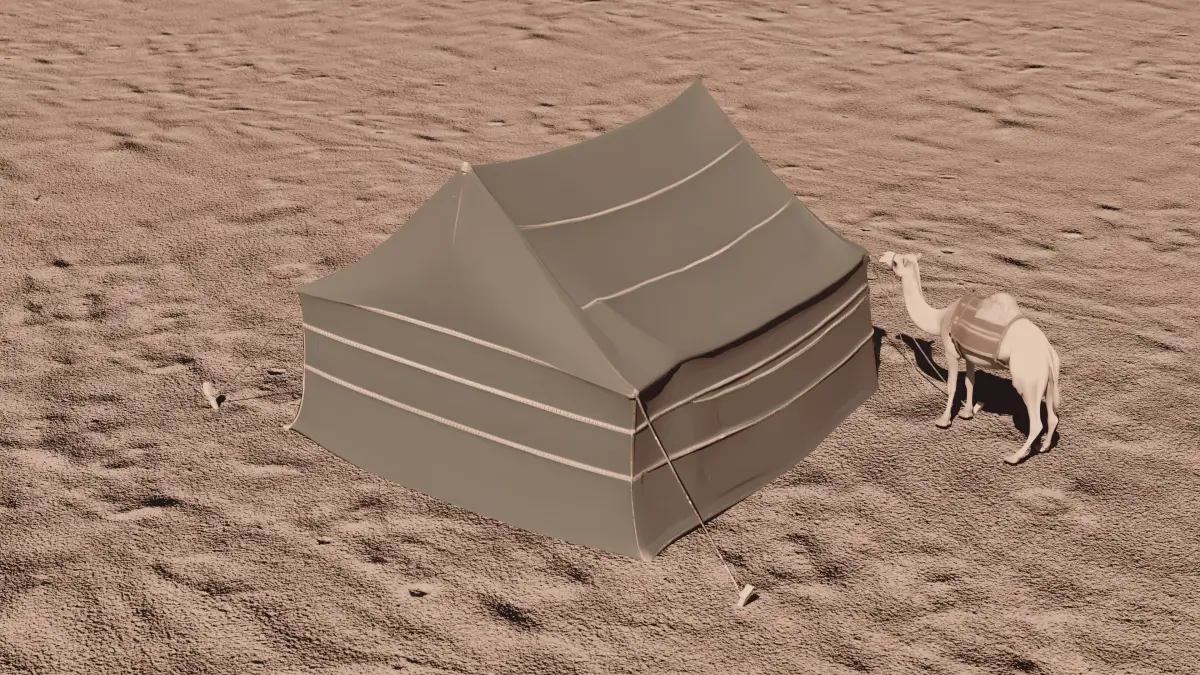 This package includes a Bedouin Desert Tent Majlis scene with a camel, designed for rendering, animation, architectural visualization, and concept art.The model was generated using AI, therefore the geometry and topology may not be fully optimized. It is not guaranteed to be game-ready, but it is perfectly suitable for design projects, rendering, and visualization purposes.UVs are non-overlapping, but not manually optimized — they work correctly with the included textures.Included FilesComplete SceneBlender file (.blend)FBX export (.fbx)OBJ export (.obj)Individual ModelsEach asset (tent, camel, cushions, carpet, props) provided separately in .obj format for easy use and customizationTexturesOrganized texture folderPBR textures included (albedo, normal, roughness, etc.)FeaturesBedouin-style tent interior with carpets, cushions, tea set, and camelOrganized and clean file structureUVs: non-overlapping (not manually optimized)AI-generated geometry (not guaranteed for real-time/game use)PBR textures includedNote: The desert ground shown in the preview images is for presentation only and is not included in the package.Formats.blend (Blender source file).fbx (scene export).obj (full scene + individual models)Recommended UseRenderingAnimationArchitectural visualization (ArchViz)Concept artNon-real-time projects