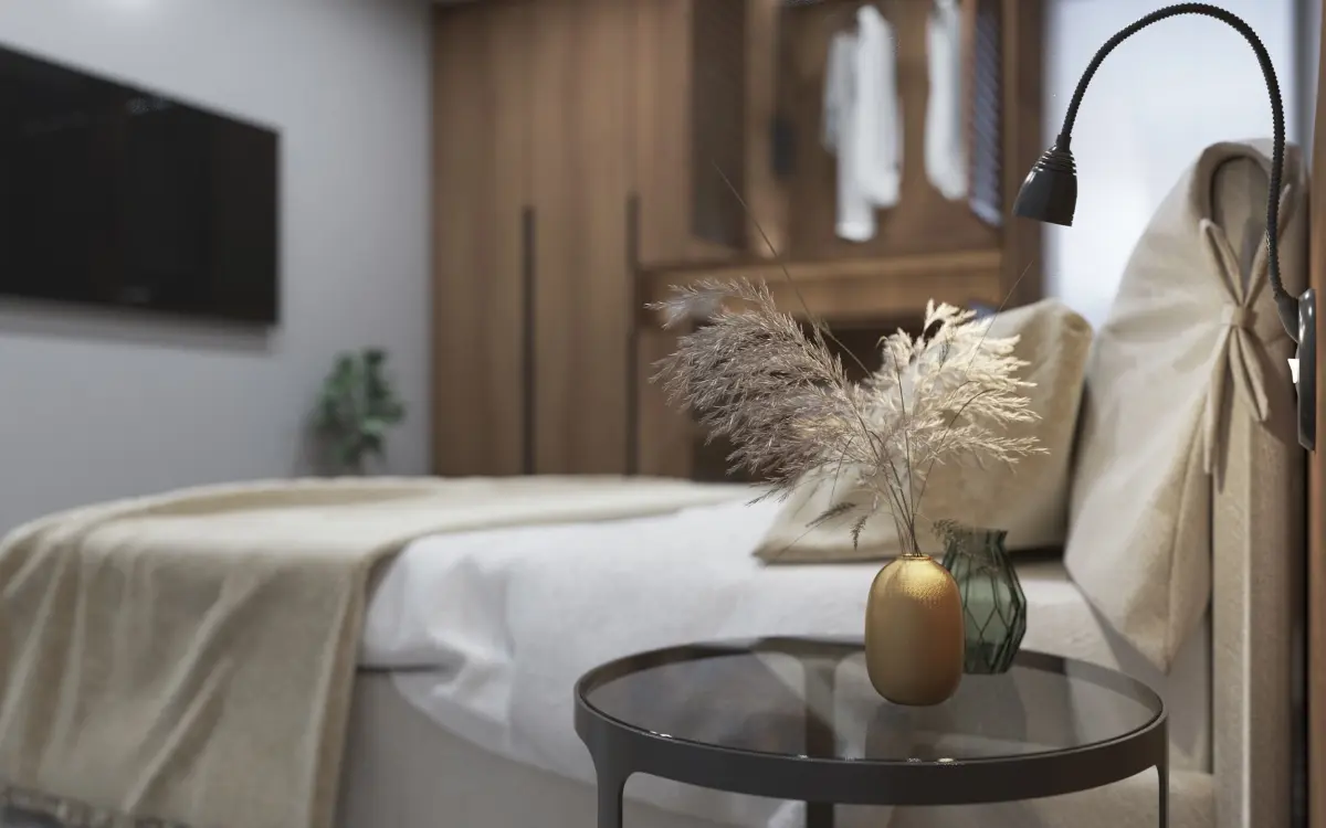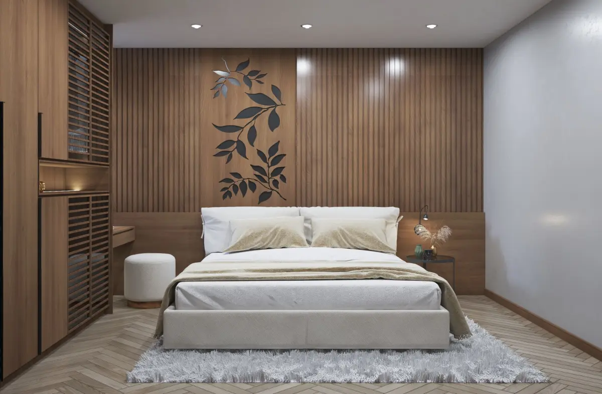 Bedroom 1 modern with wooden paneling 3D model