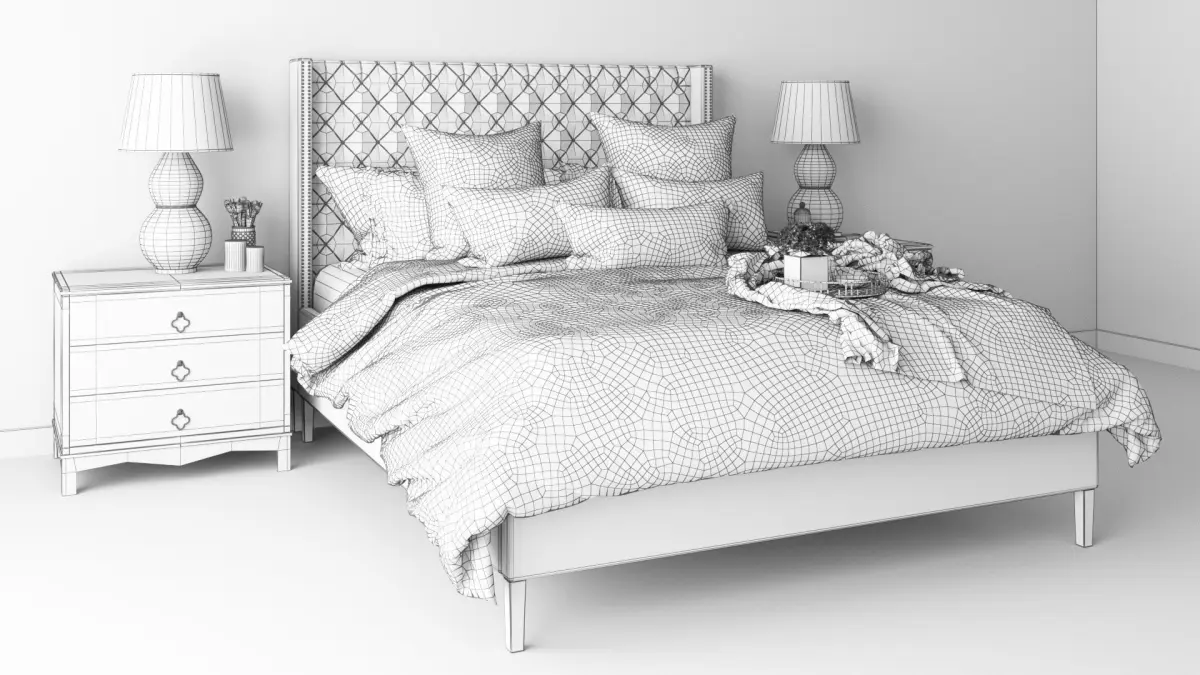 - All main textures are tile-able such as fabrics, pillows, timber and in 4k and 2k resolutions except procedural items such as gold, silver, brushed metal & accessories.