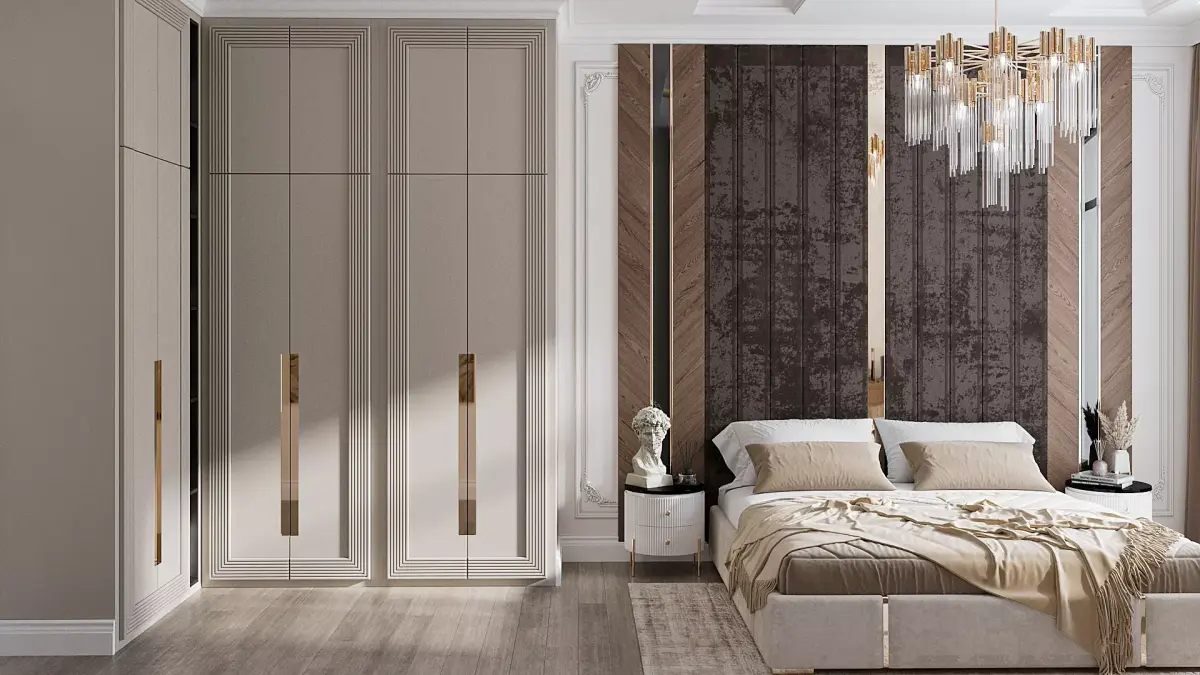 Wardrobes and nightstands in wood, MDF, or veneer finishes